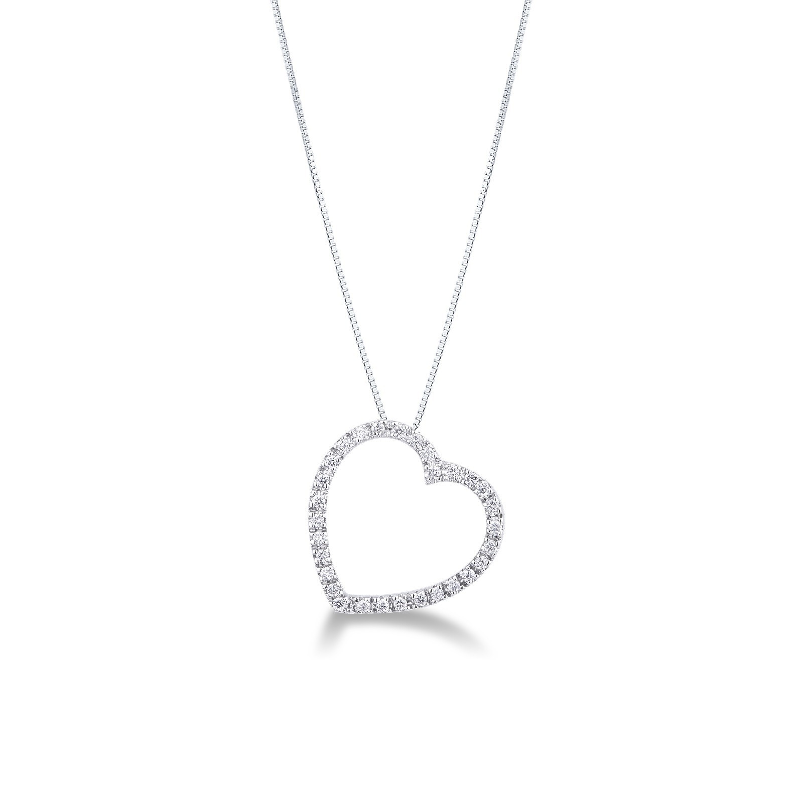 Collier cœur avec pendentif en or blanc 18k et diamants