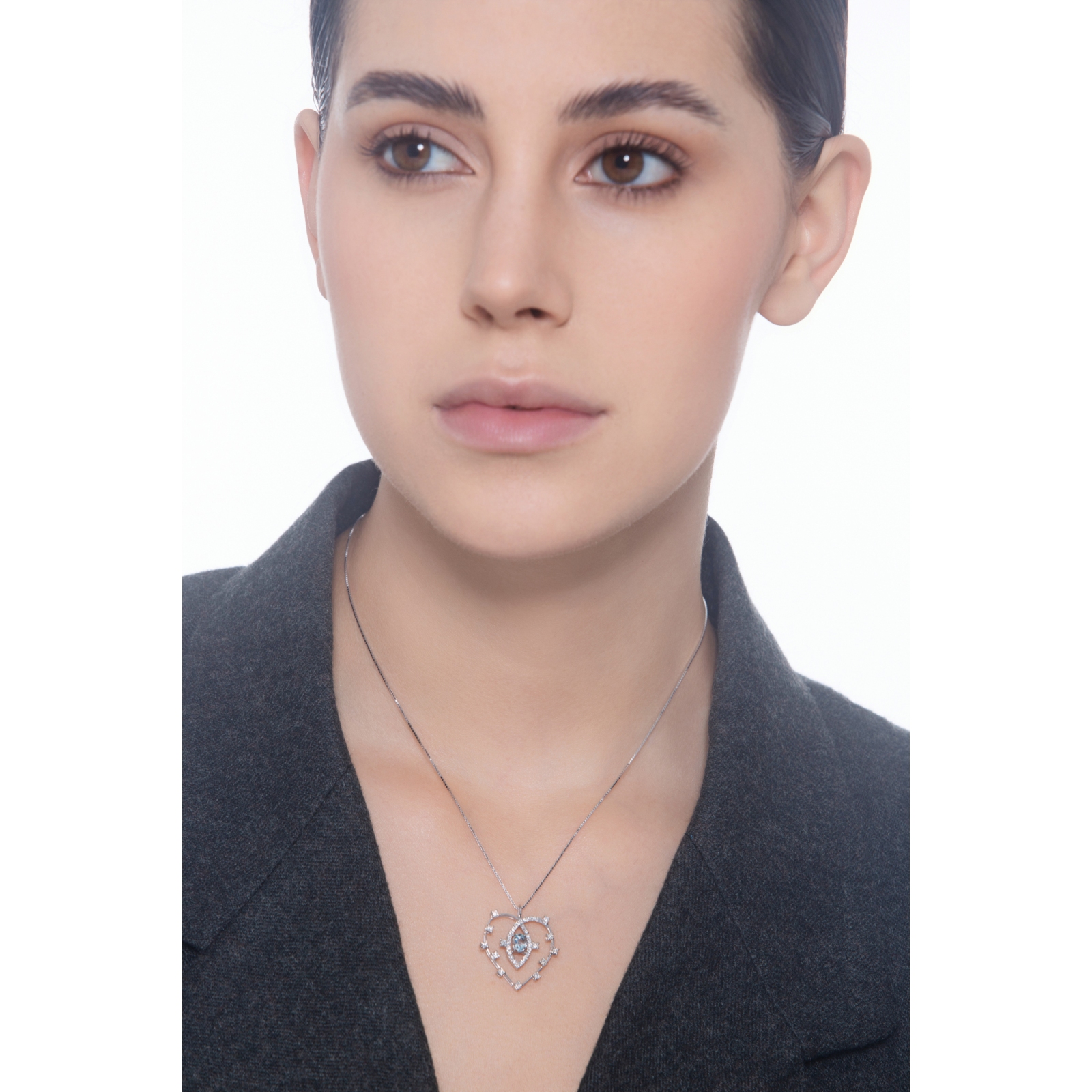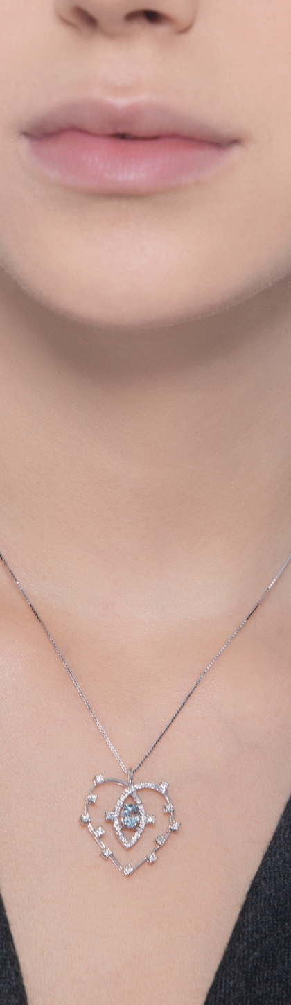 Collier cœur en aquamarine ovale et diamants en or blanc 18k