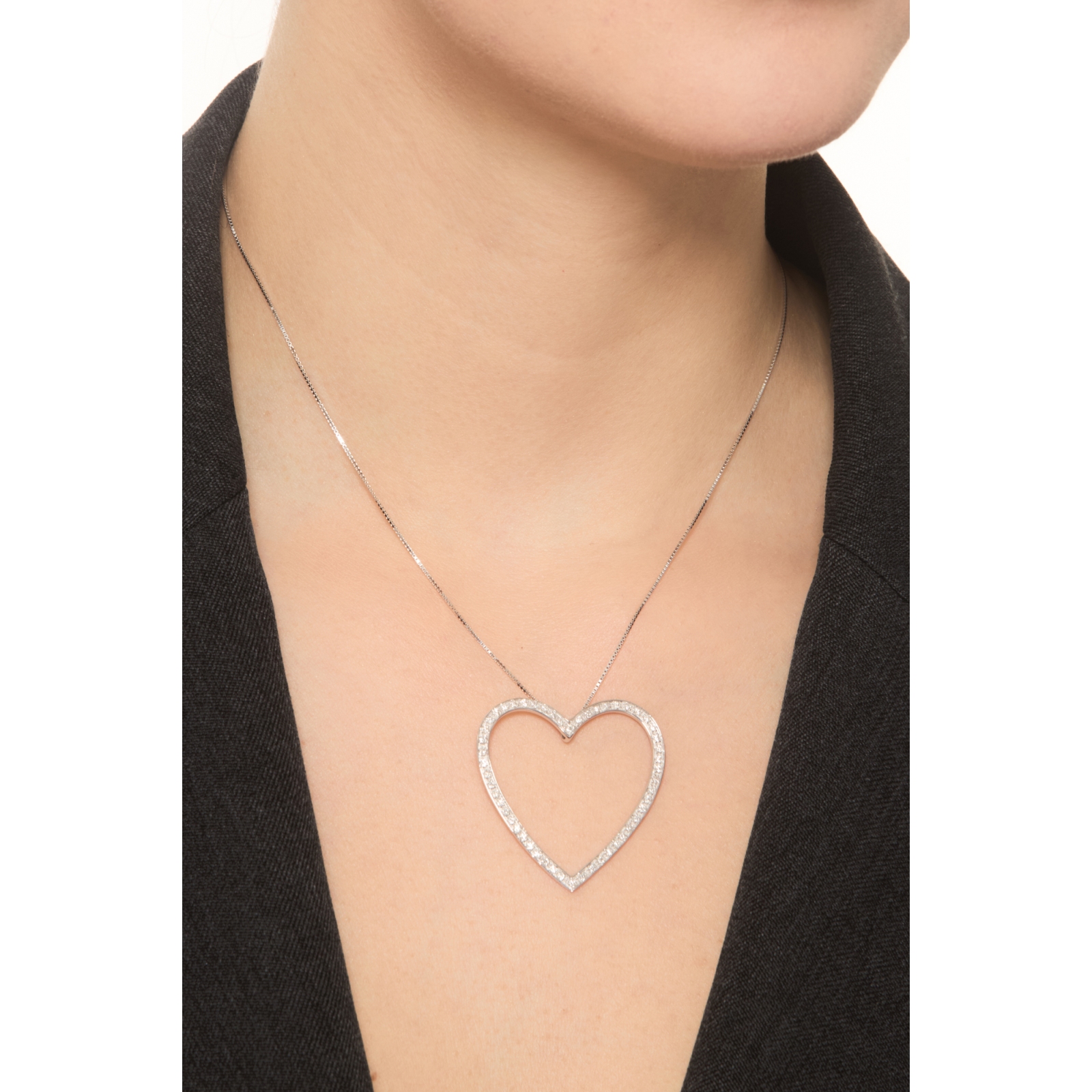 Collier cœur large en or blanc 18K