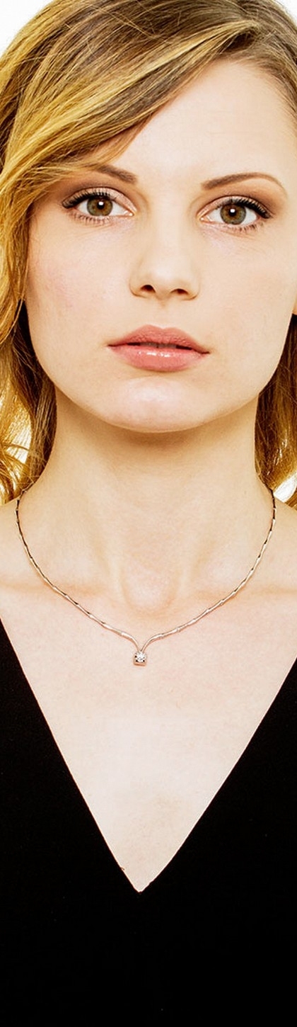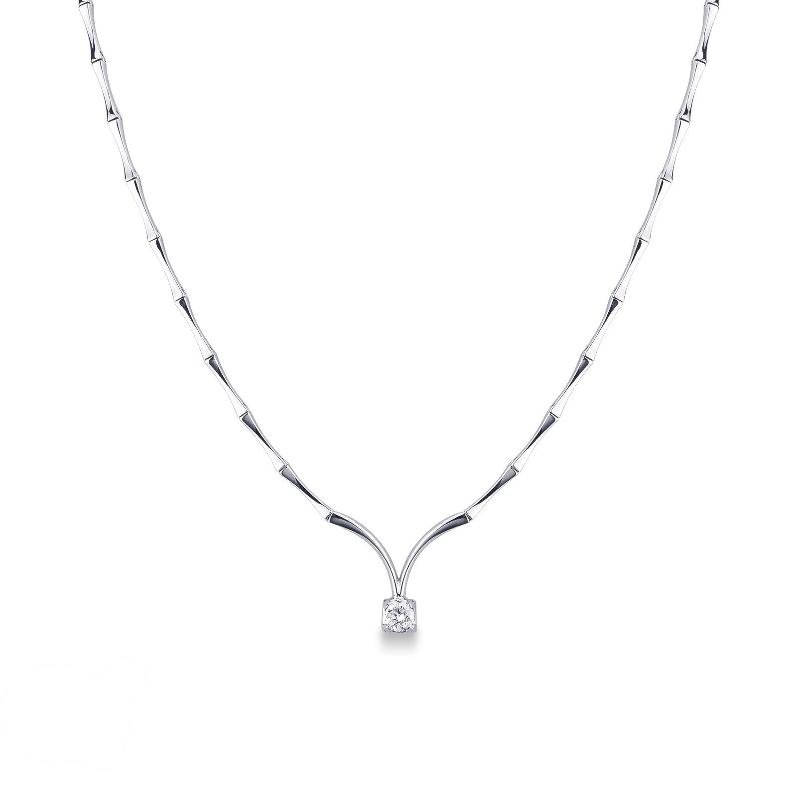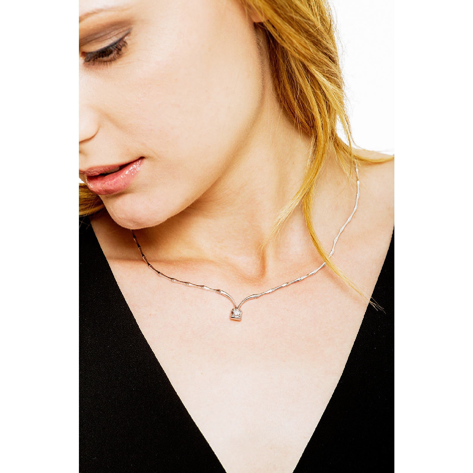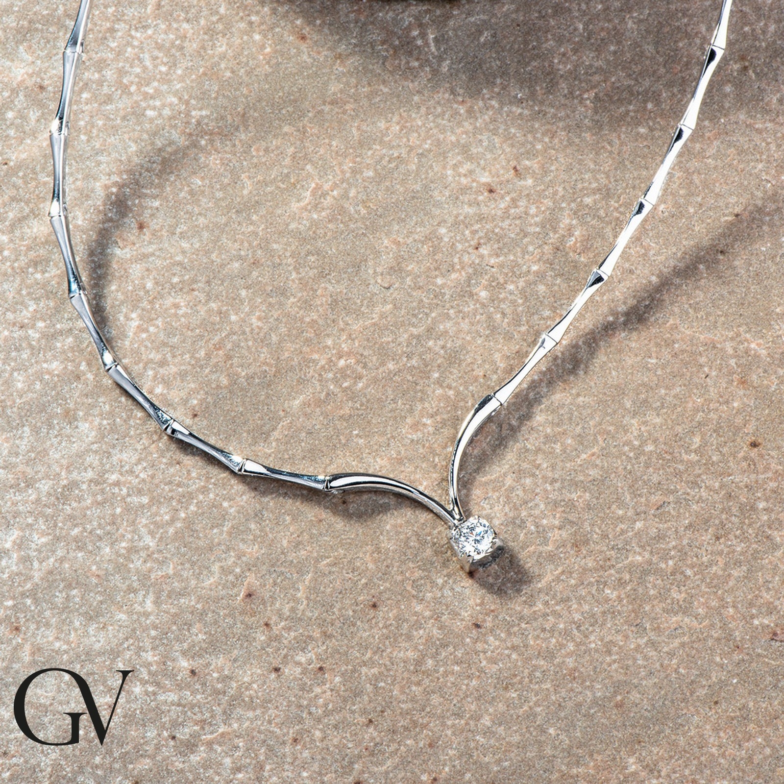 Collier diamant solitaire semi-rigide à segments en or blanc 18k