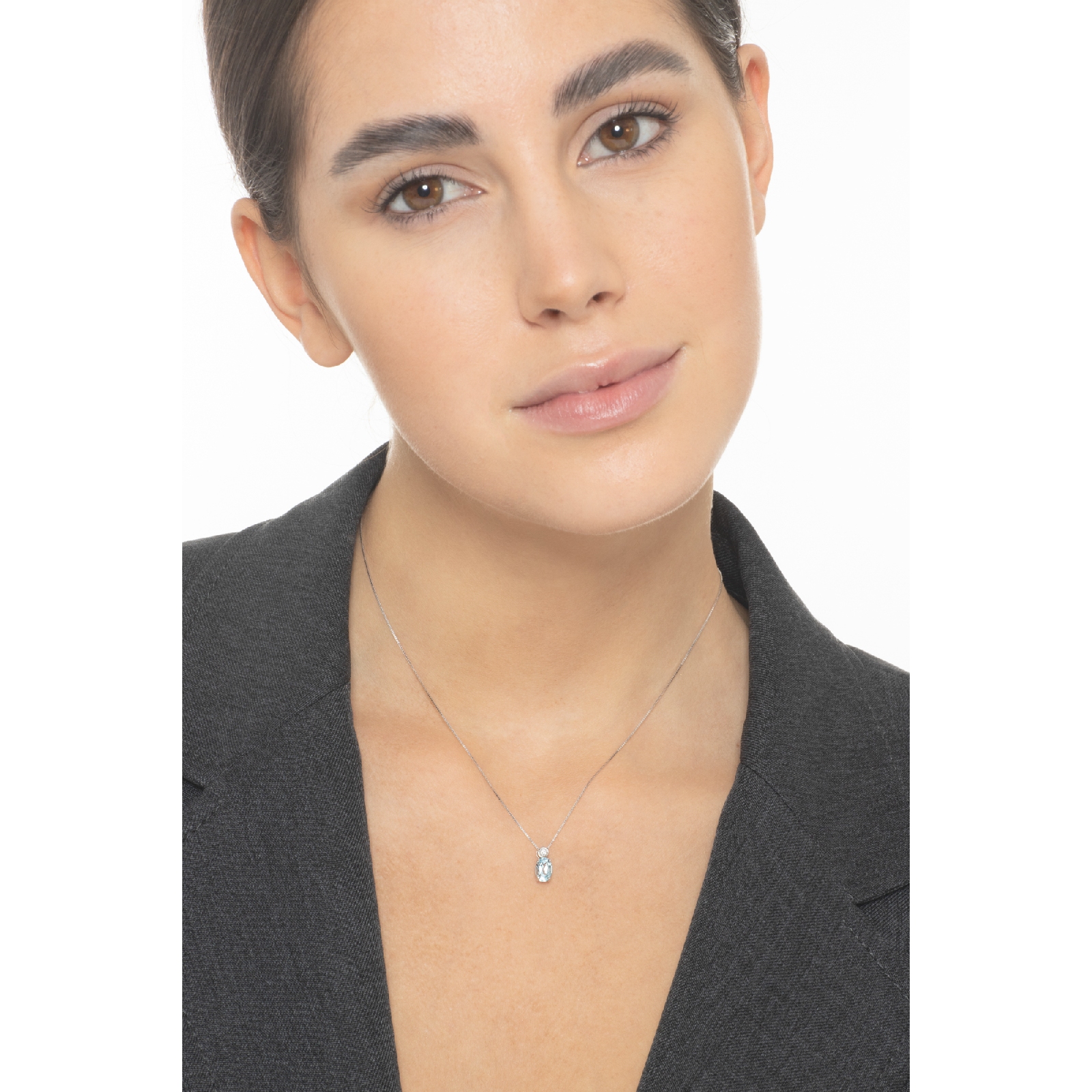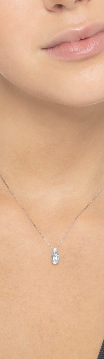 Collier en or blanc 18 carats avec aigue-marine centrale et diamant