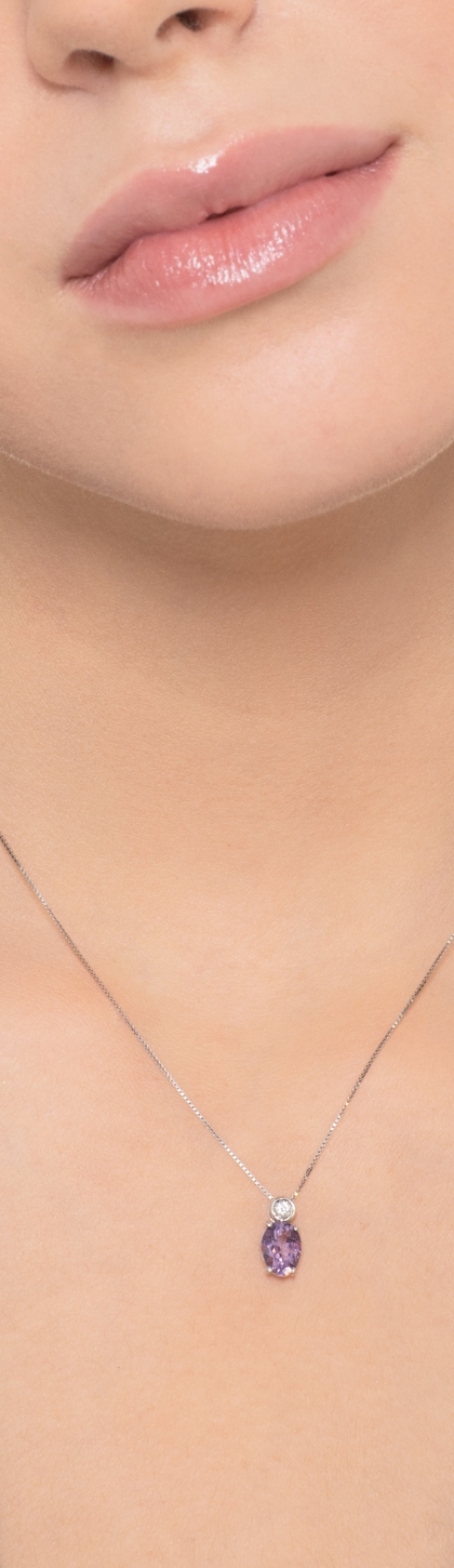 Collier en or blanc 18 carats avec améthyste centrale et diamant