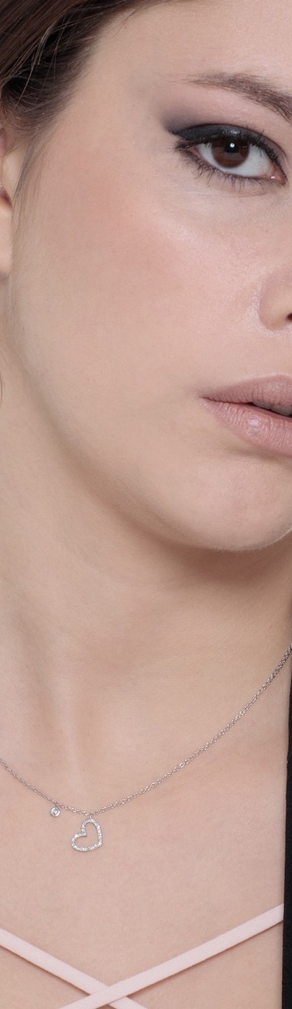 Collier en or blanc 18 carats avec pendentif cœur en diamants et solitaire