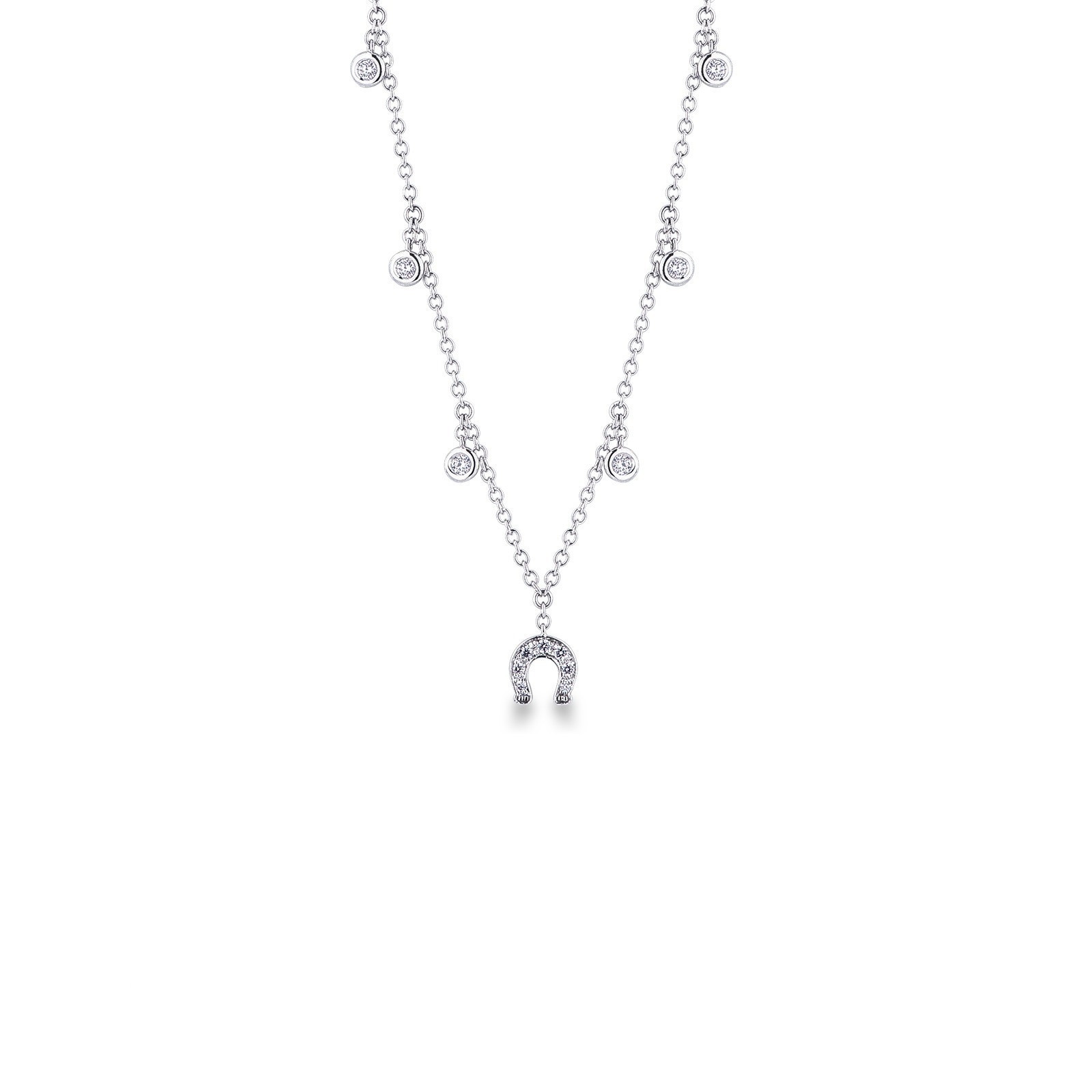 Collier en or blanc 18 carats avec pendentif fer à cheval et diamants