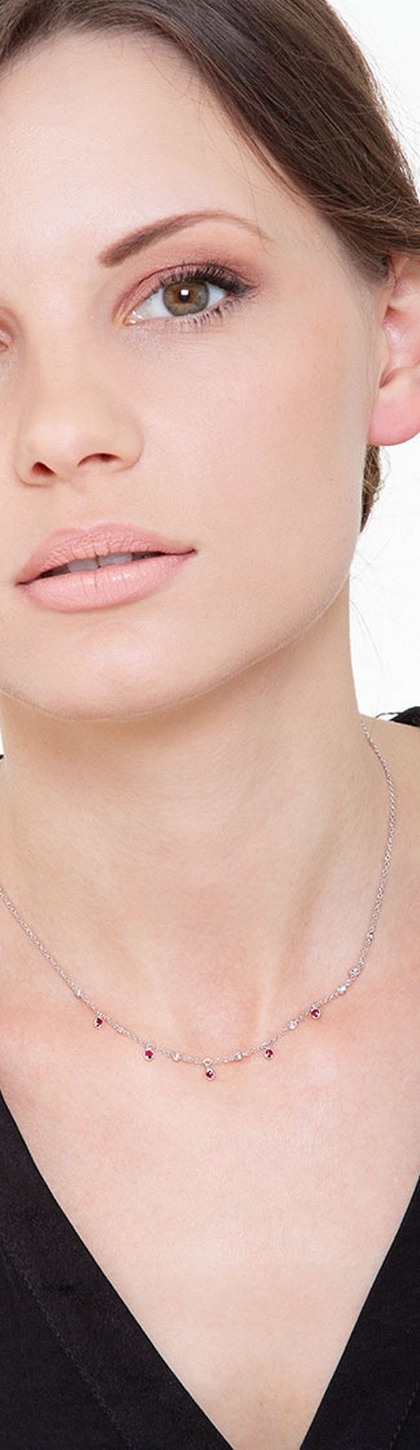 Collier en or blanc 18 carats avec pendentifs goutte rubis et diamants