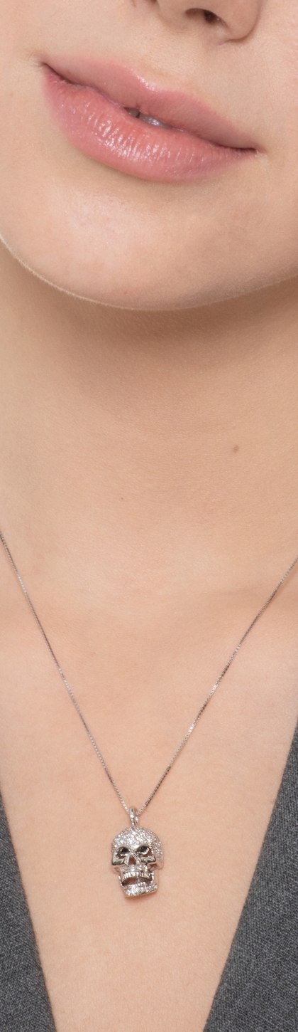Collier en or blanc 18 carats tête de mort en diamants blancs et yeux noirs