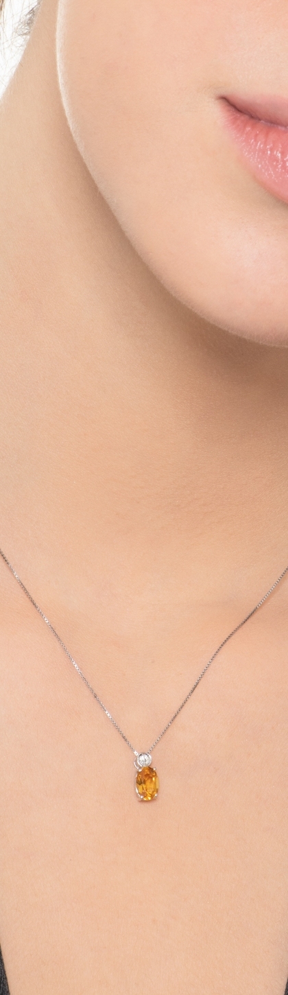 Collier en or blanc 18k avec citrine centrale et diamant