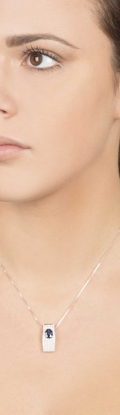 Collier en or blanc 18k avec diamants et saphir bleu