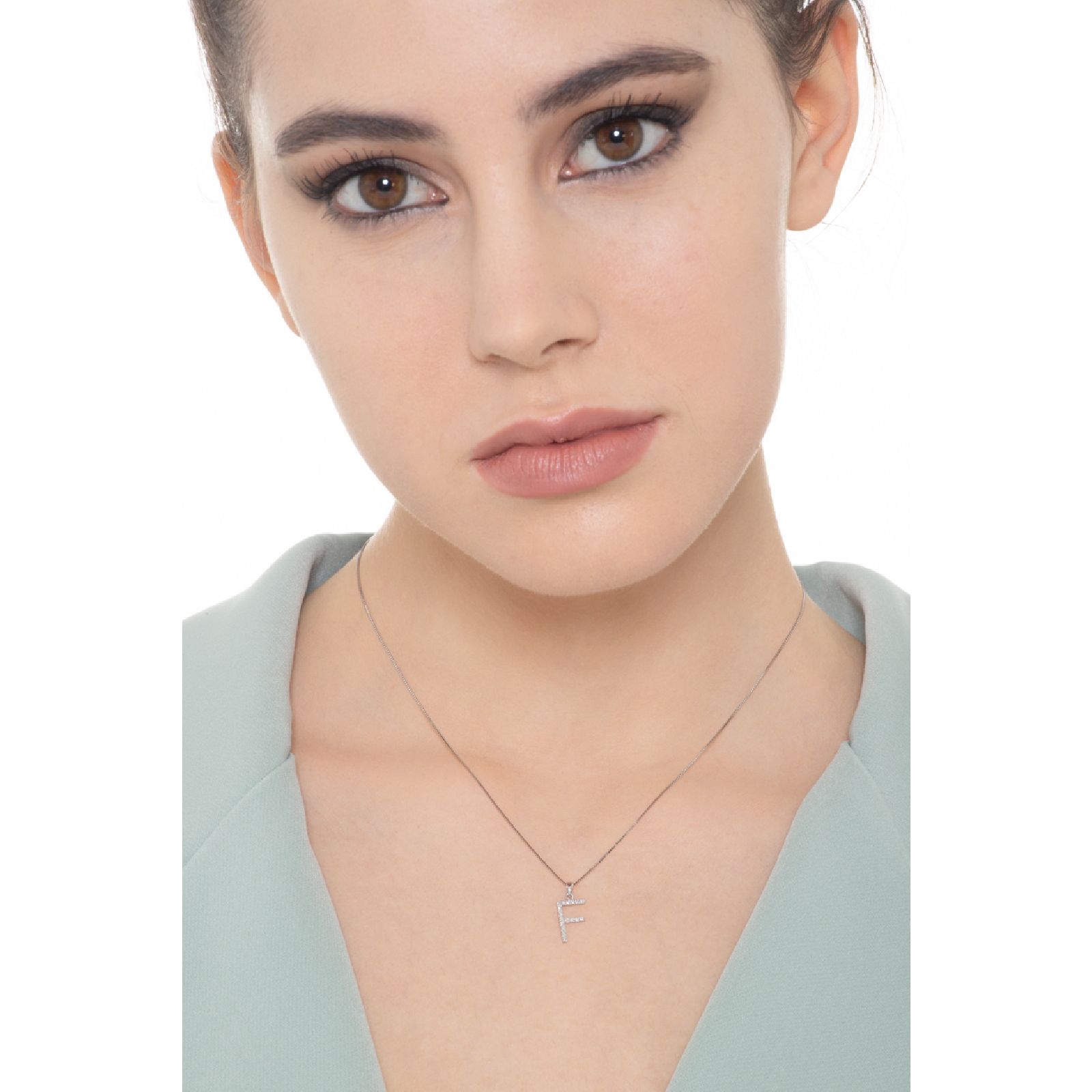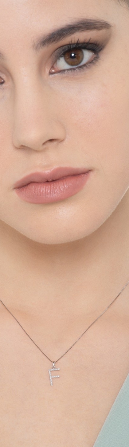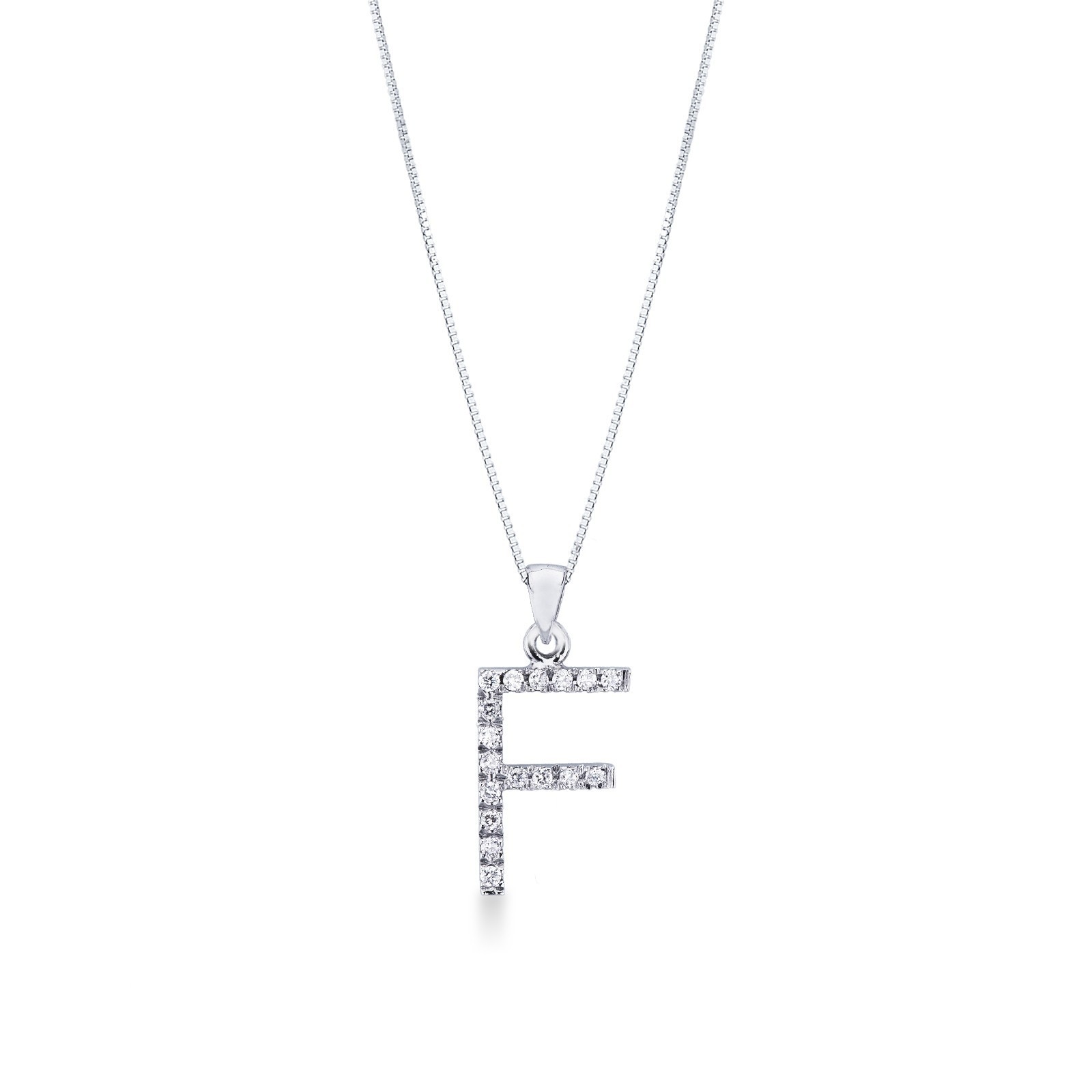 Collier en or blanc 18k avec lettre F, 1 cm