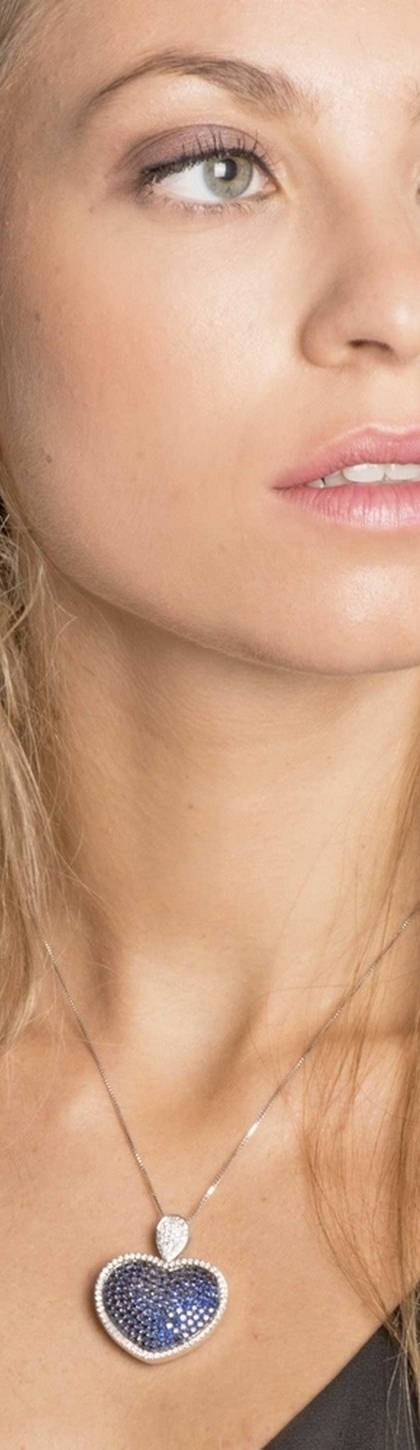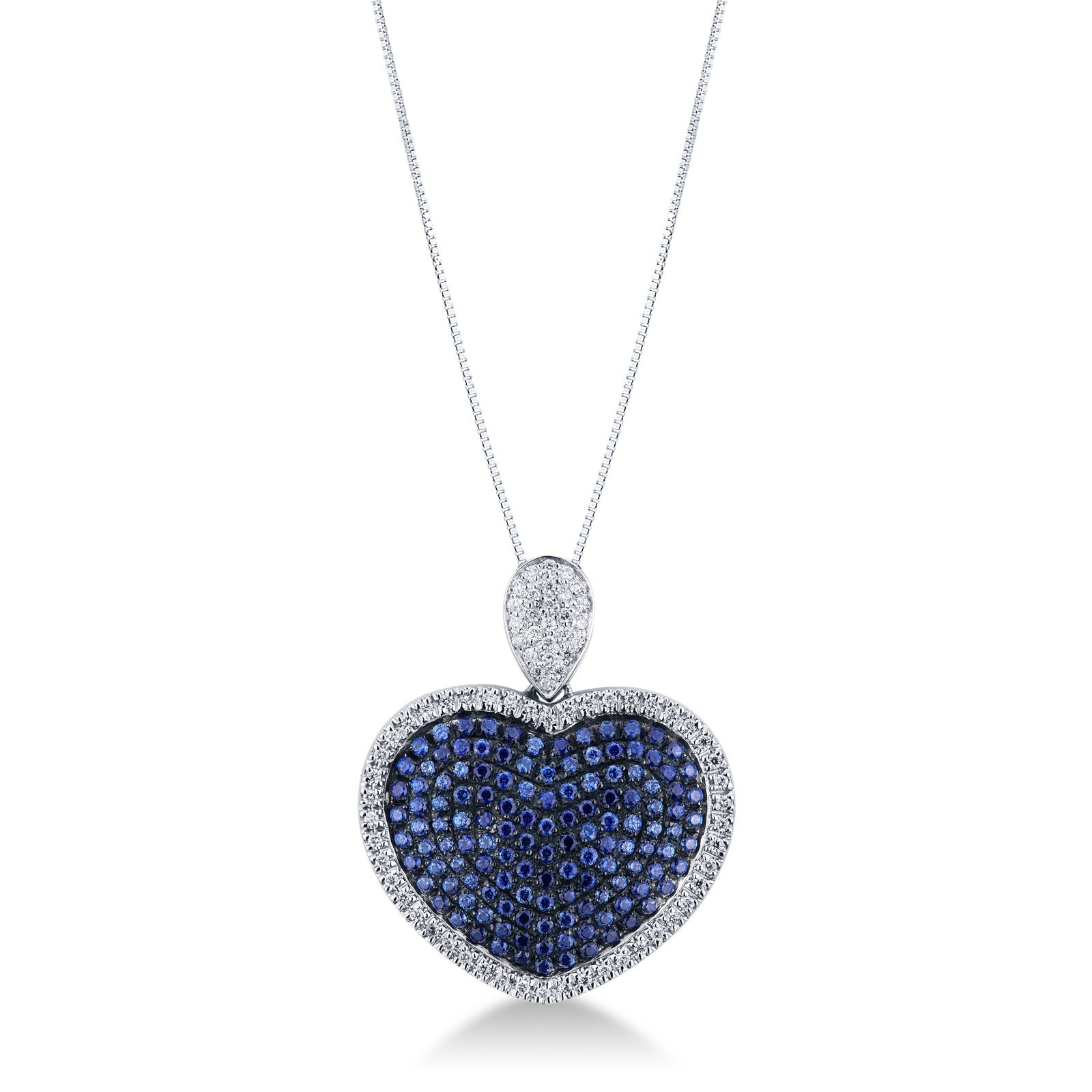 Collier en Or Blanc 18k avec Pavé de Saphirs Bleus et Diamants