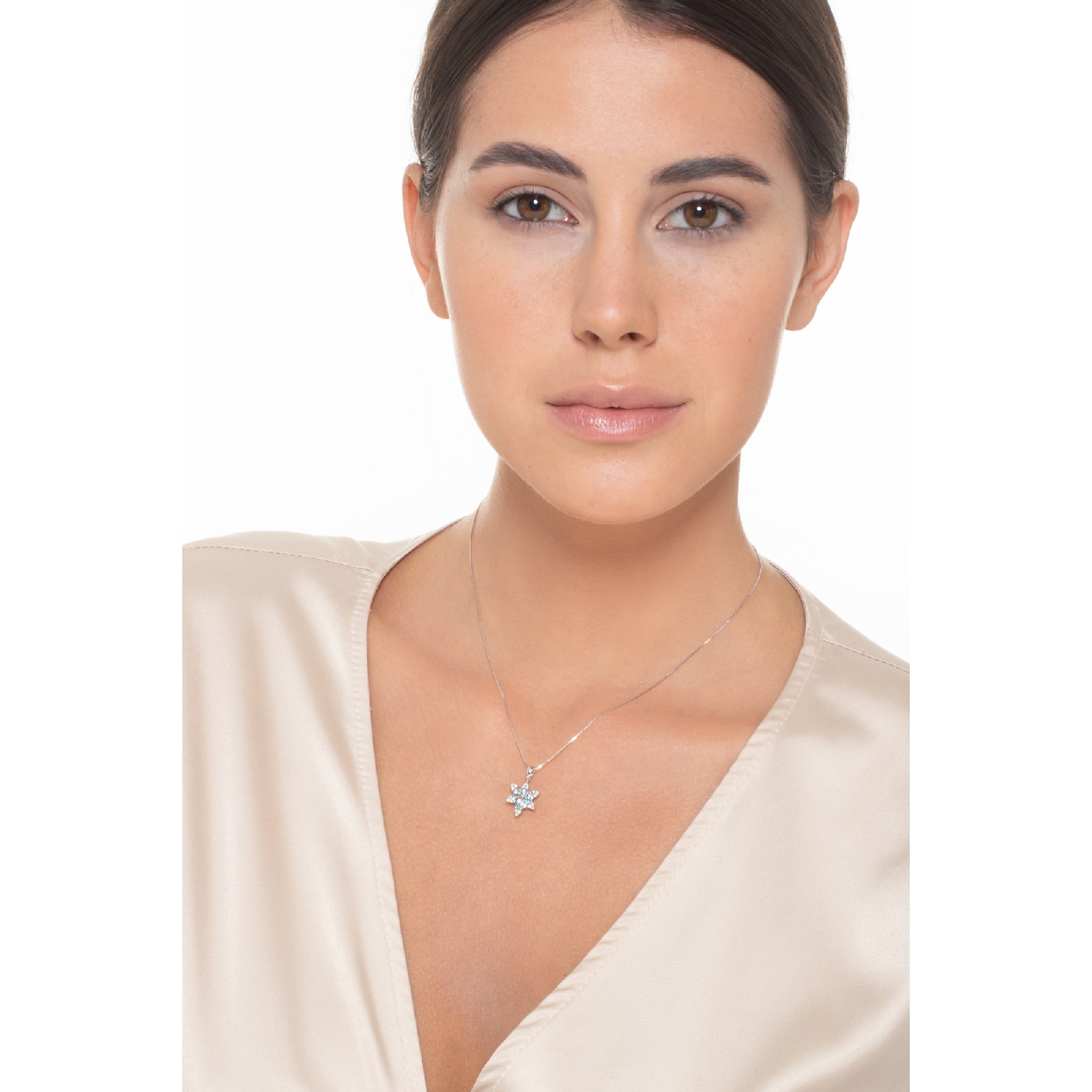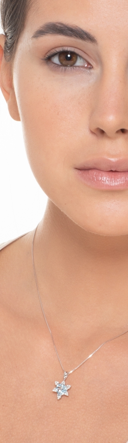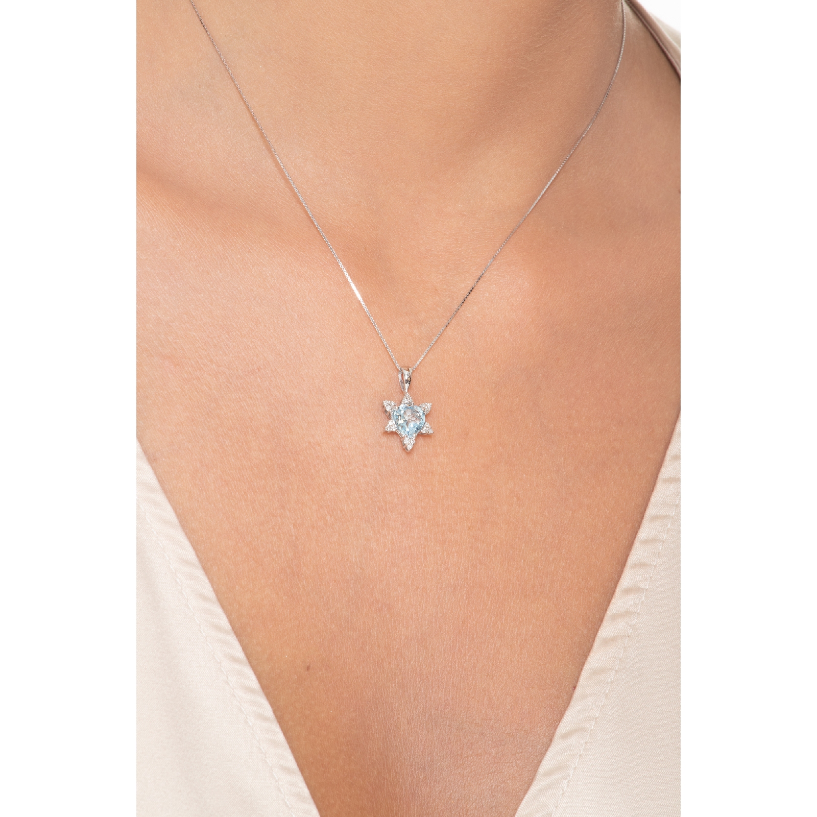 Collier en or blanc 18k avec pendentif aigue marine coeur