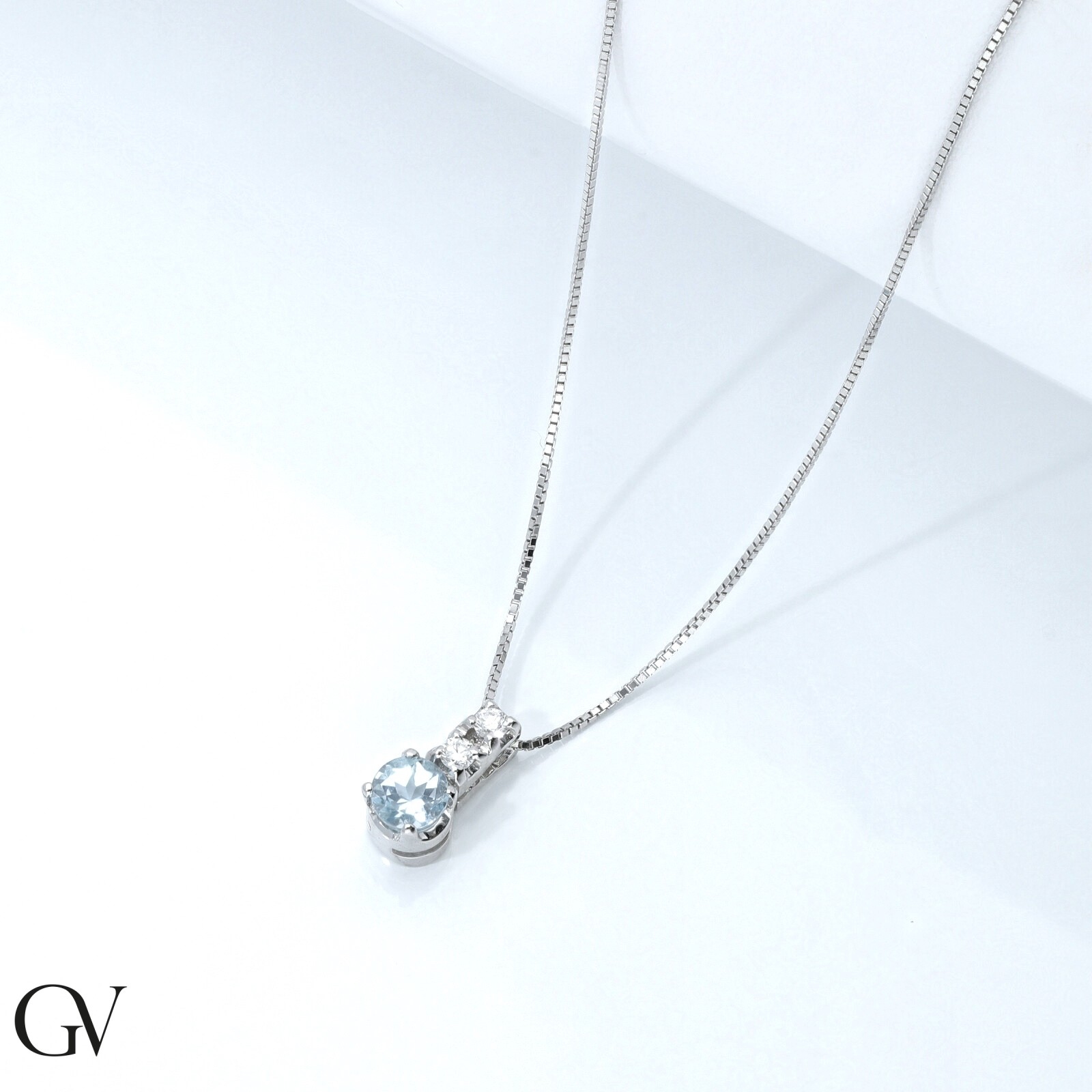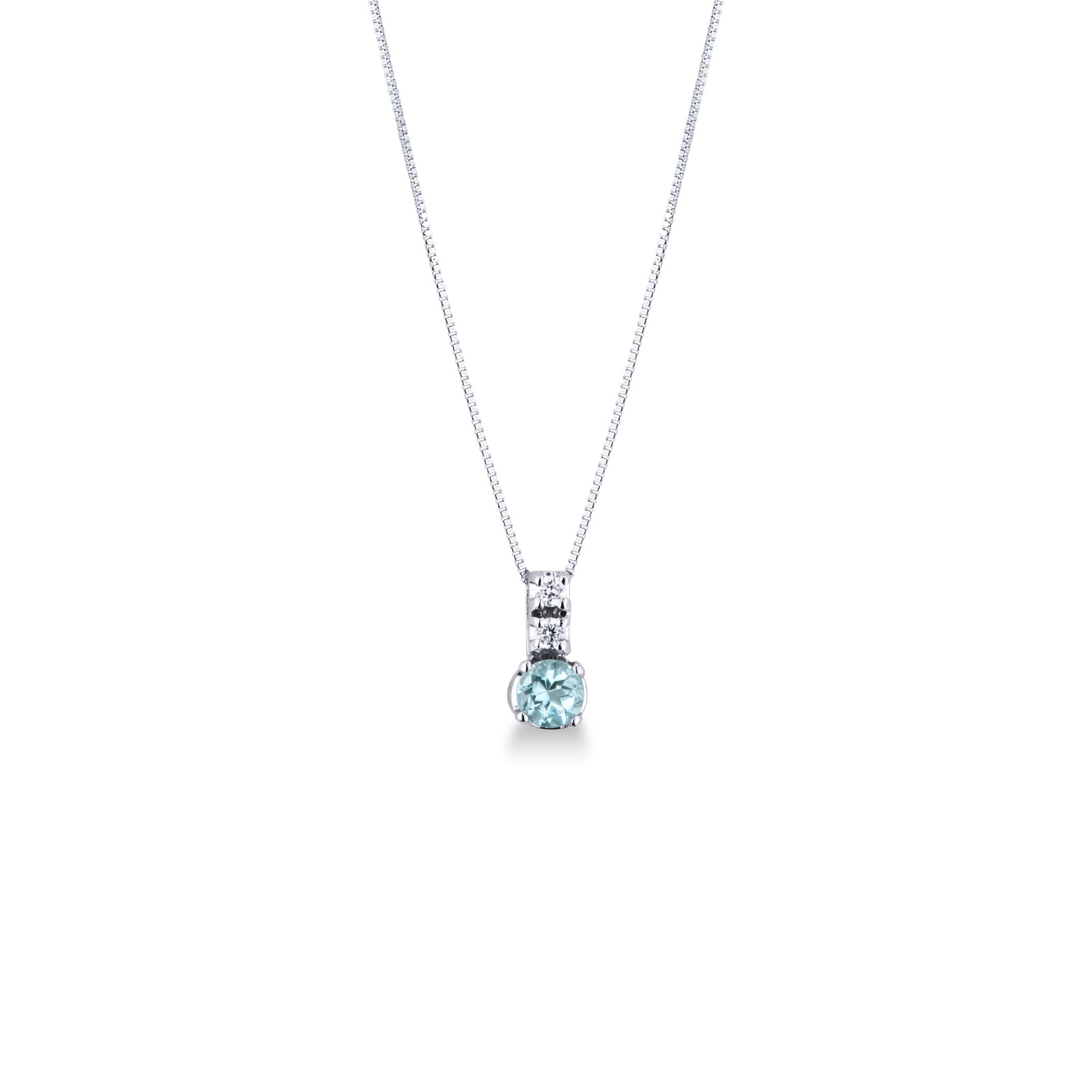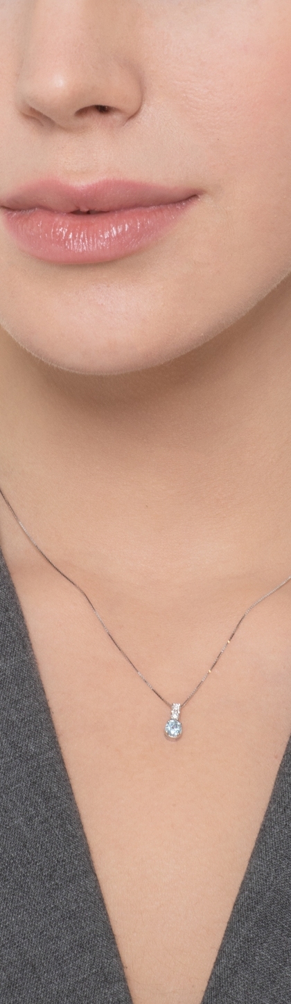 Collier en or blanc 18k avec pendentif aiguemarine et diamants