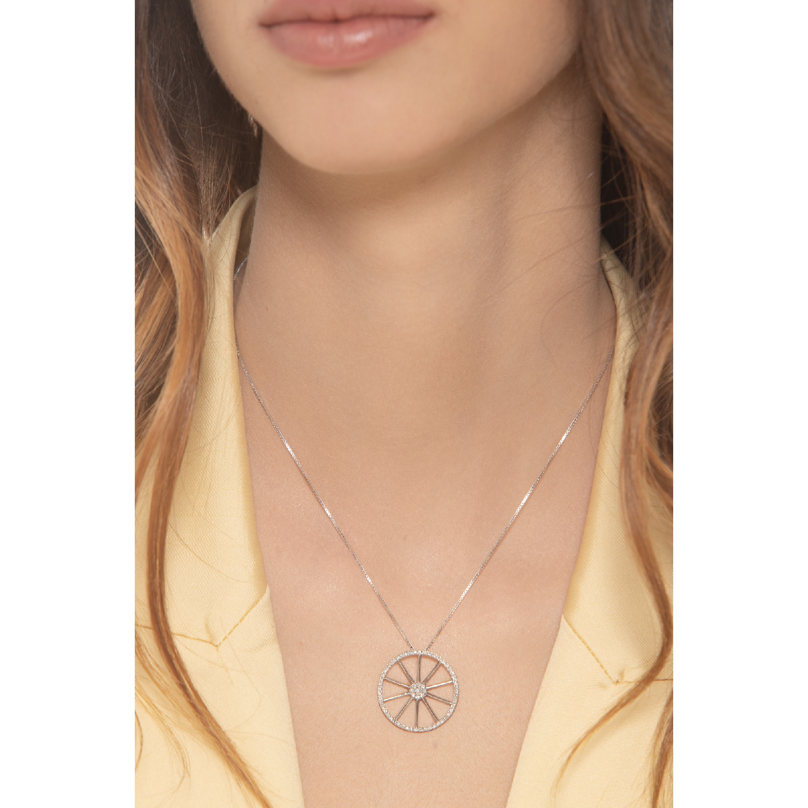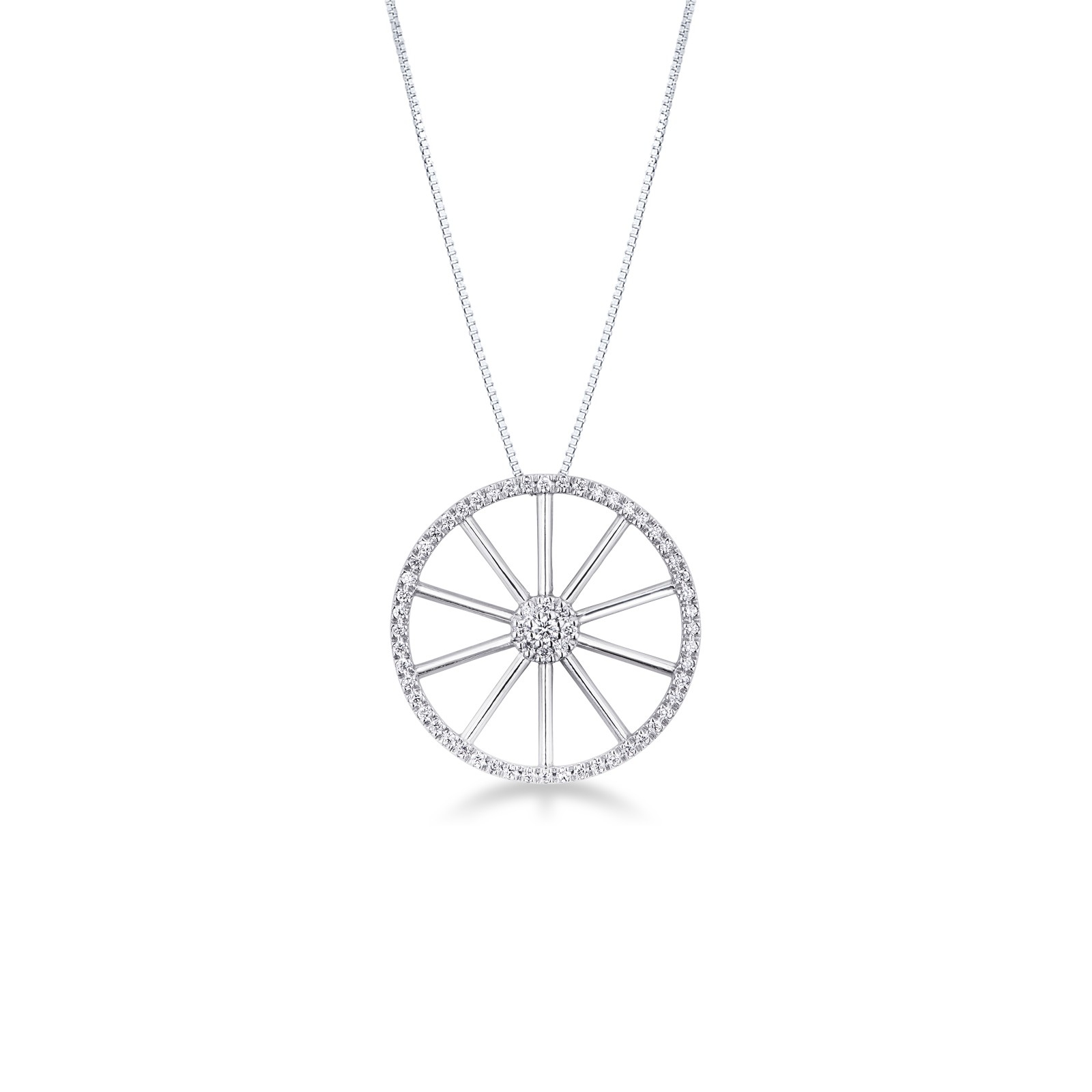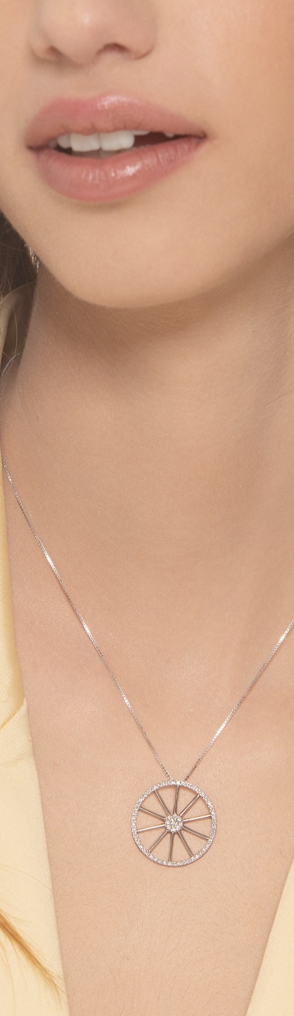 Collier en or blanc 18k avec pendentif en forme de roue