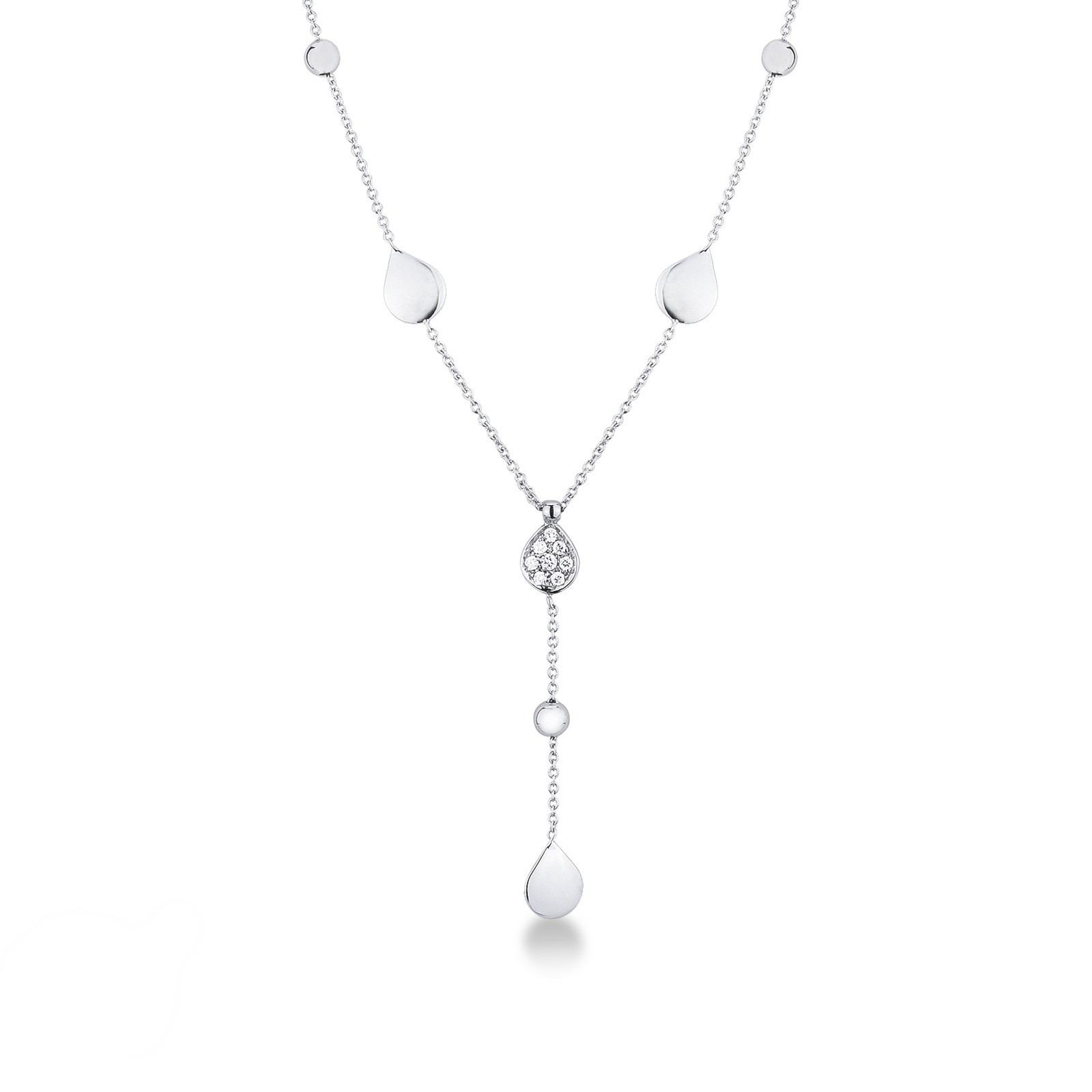 Collier en Or Blanc 18k avec Pendentif Goutte et Diamants