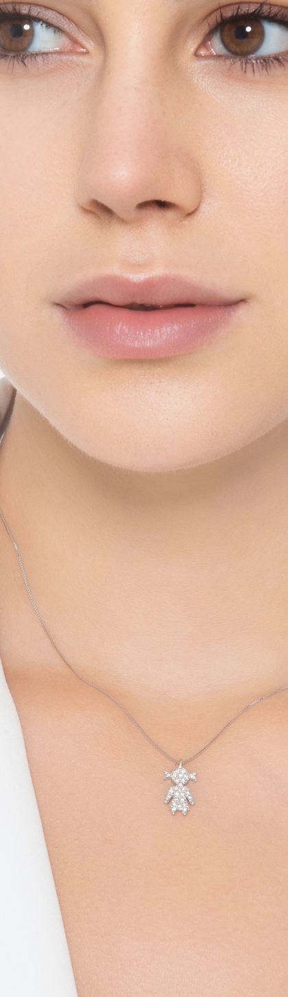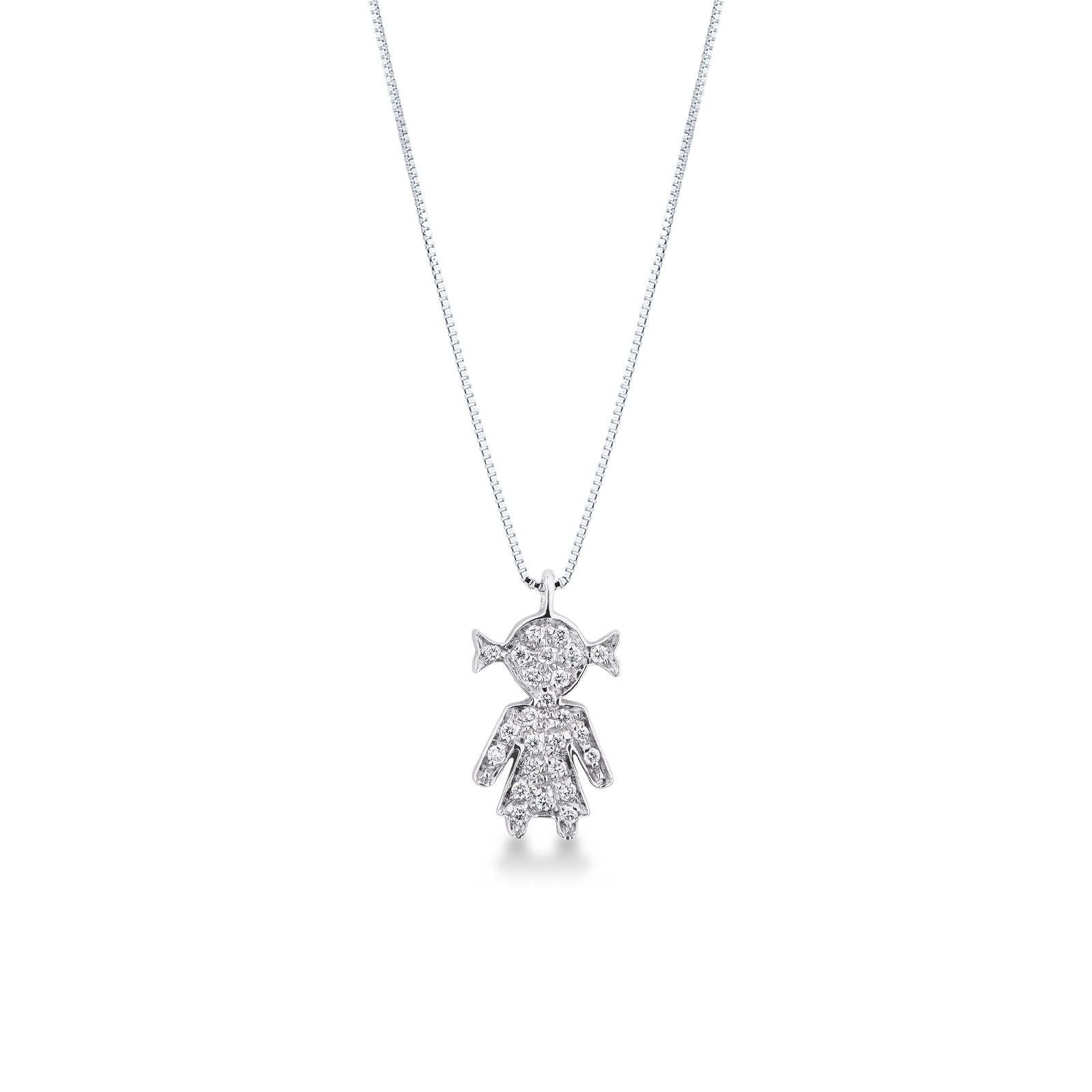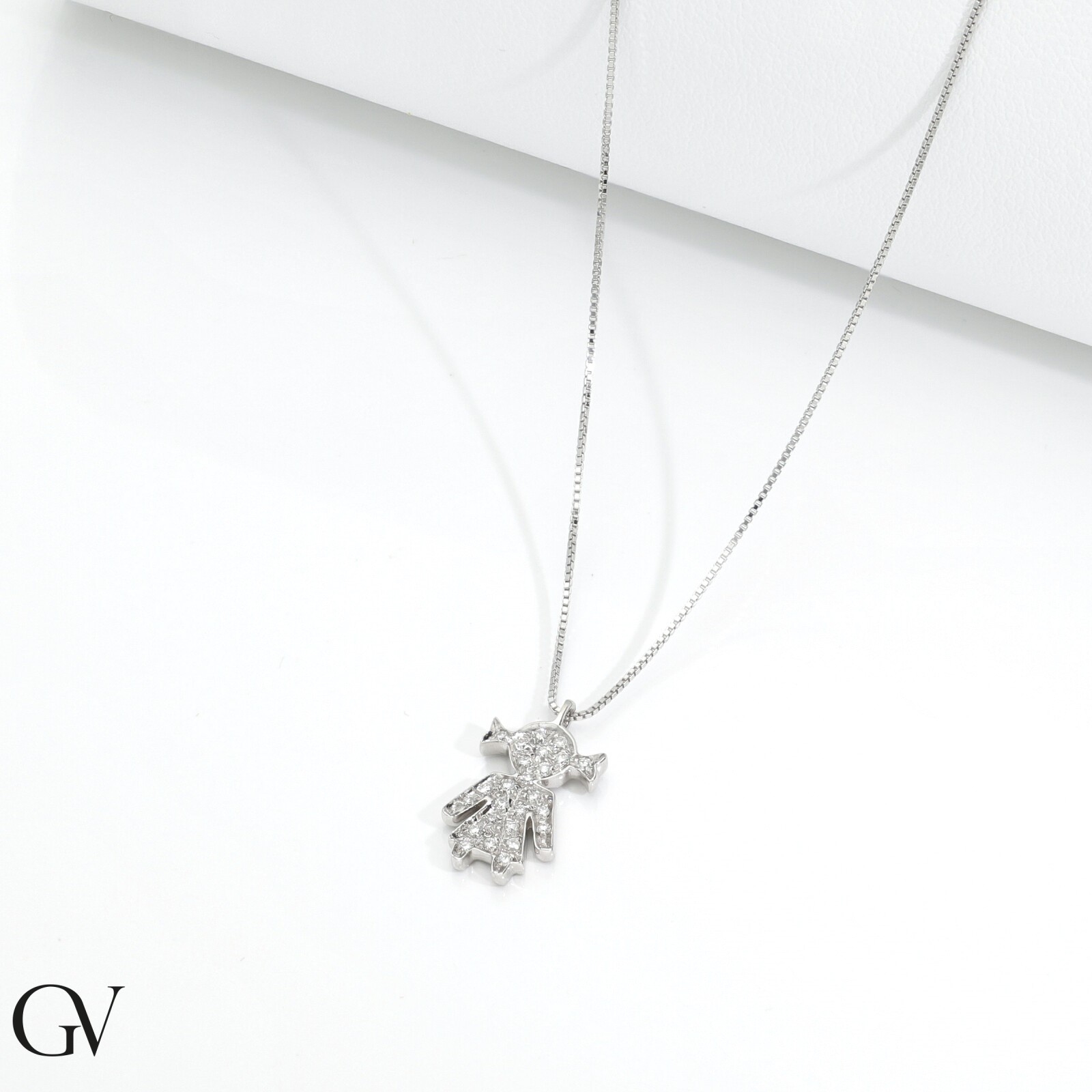 Collier en or blanc 18k avec pendentif petite fille en diamants