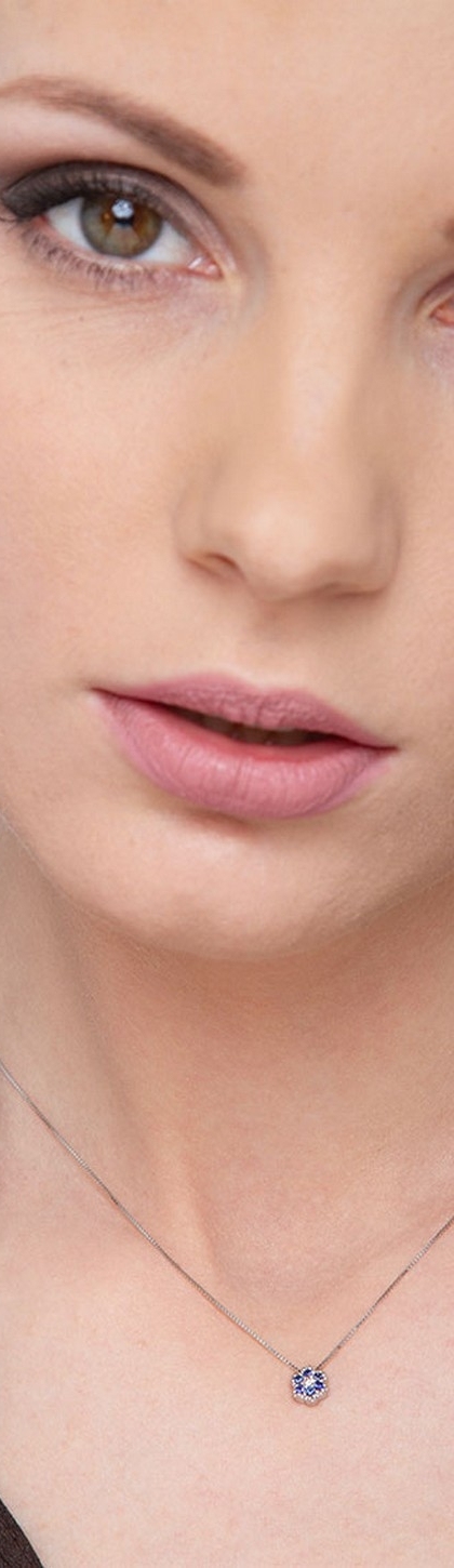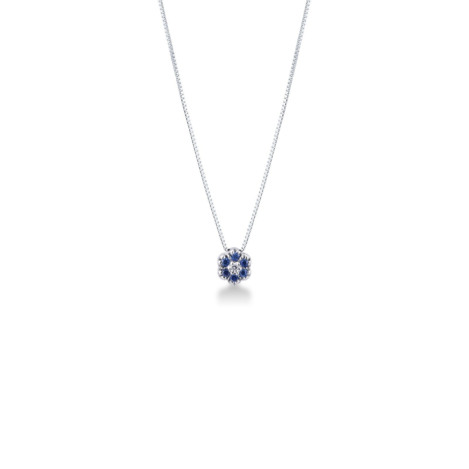 Collier en or blanc 18k fleur diamant et saphirs bleus