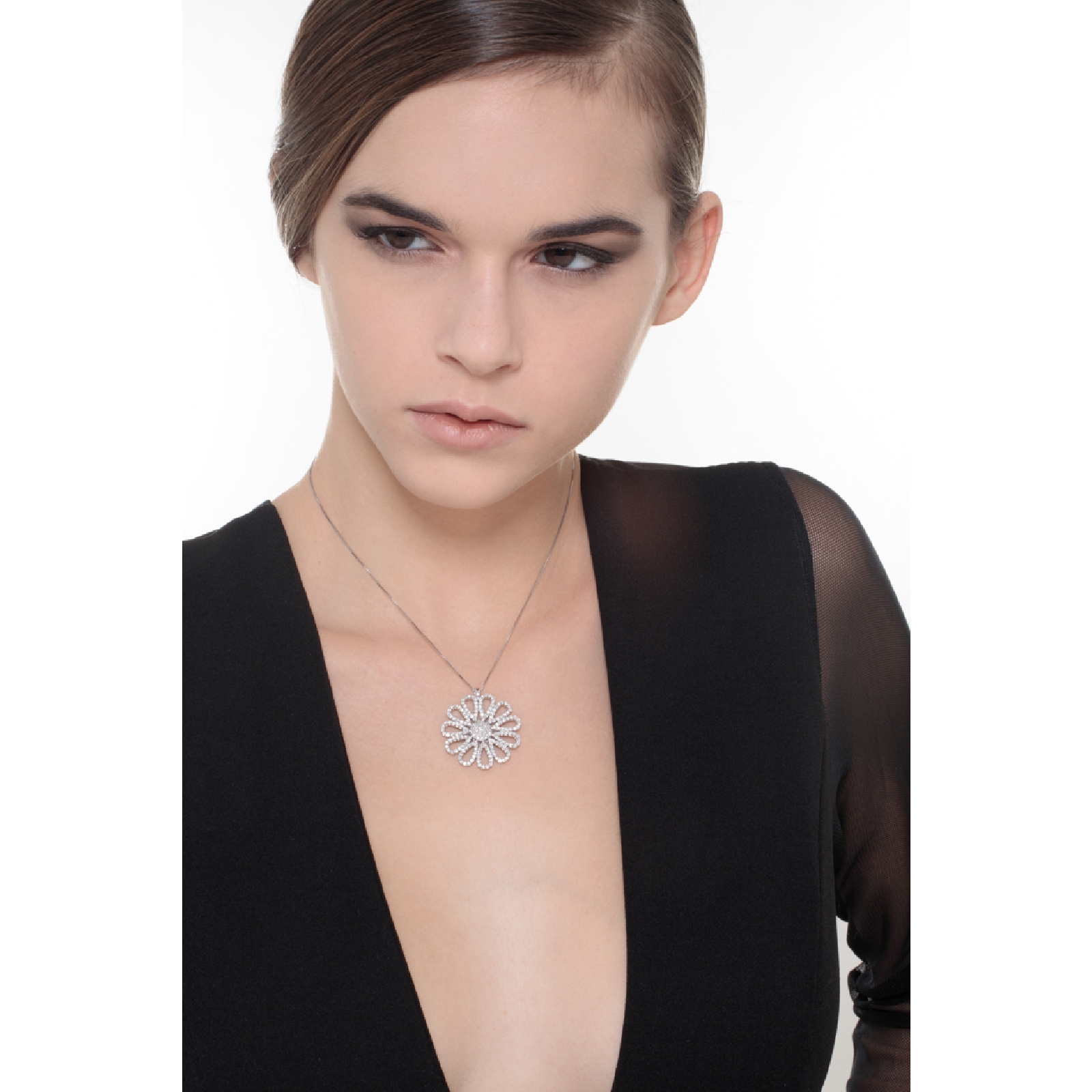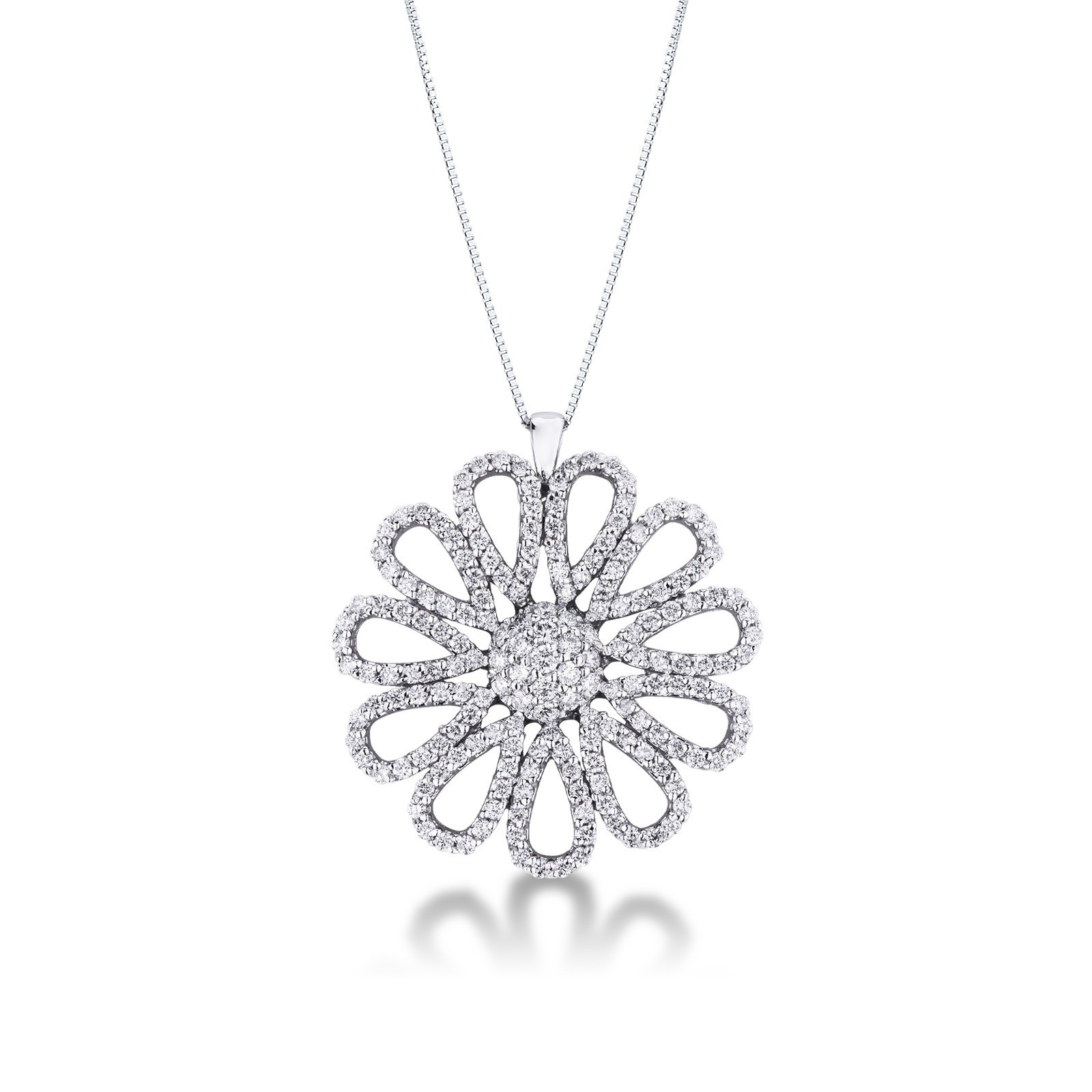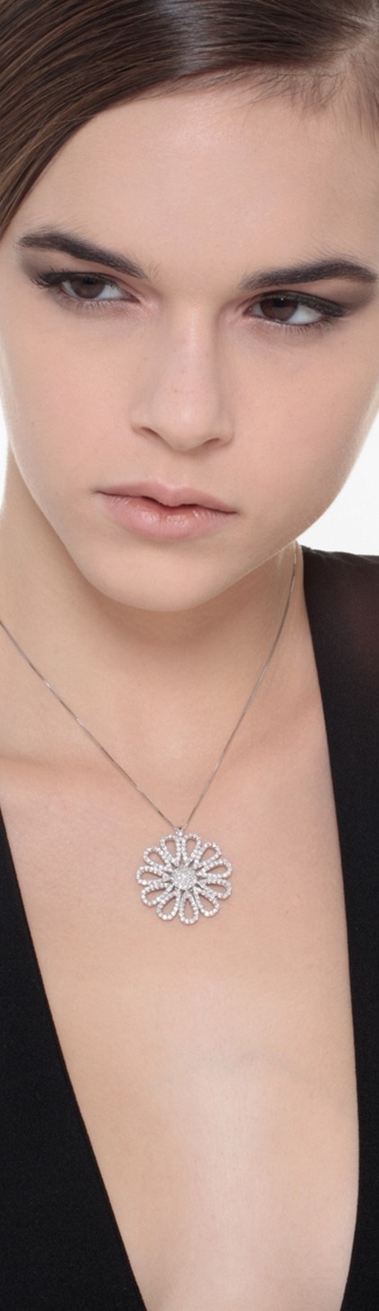 Collier en or blanc 18k orné d’une fleur de diamants