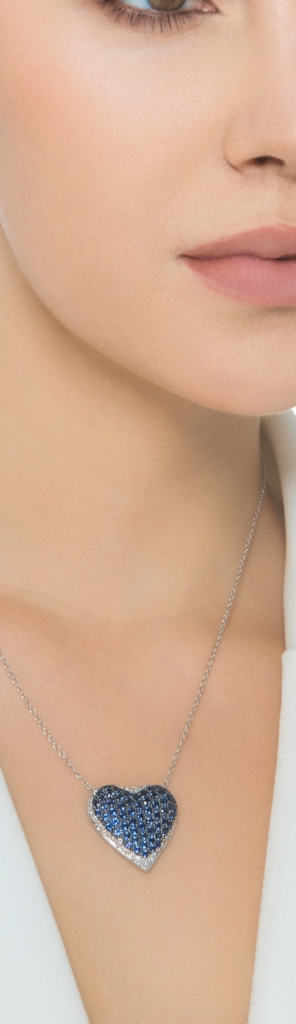 Collier en or blanc 18k pavé et saphirs bleus