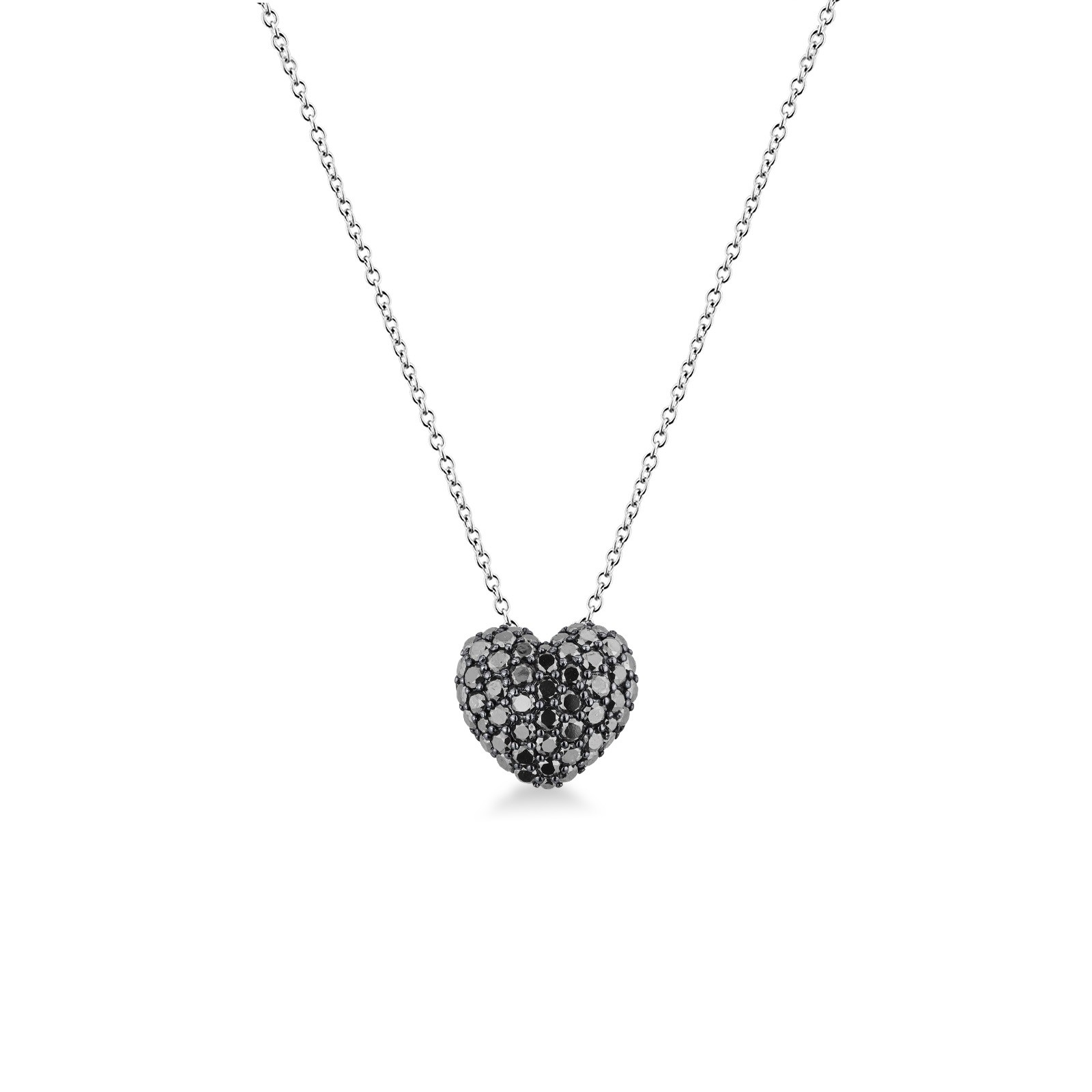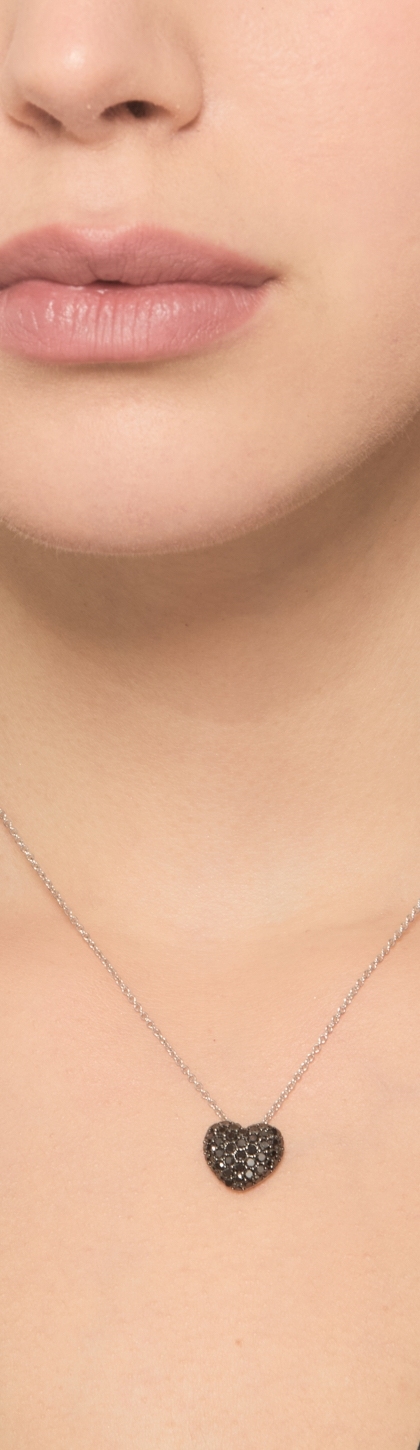 Collier en or blanc 18k pendentif cœur diamants noirs