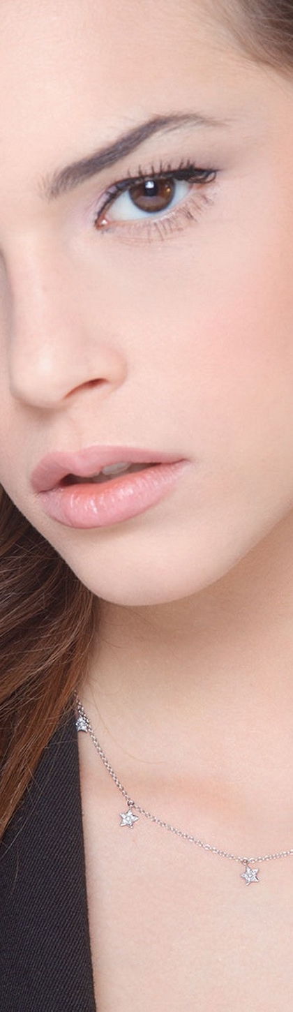 Collier en or blanc 18k pendentifs en forme d'étoile en diamants