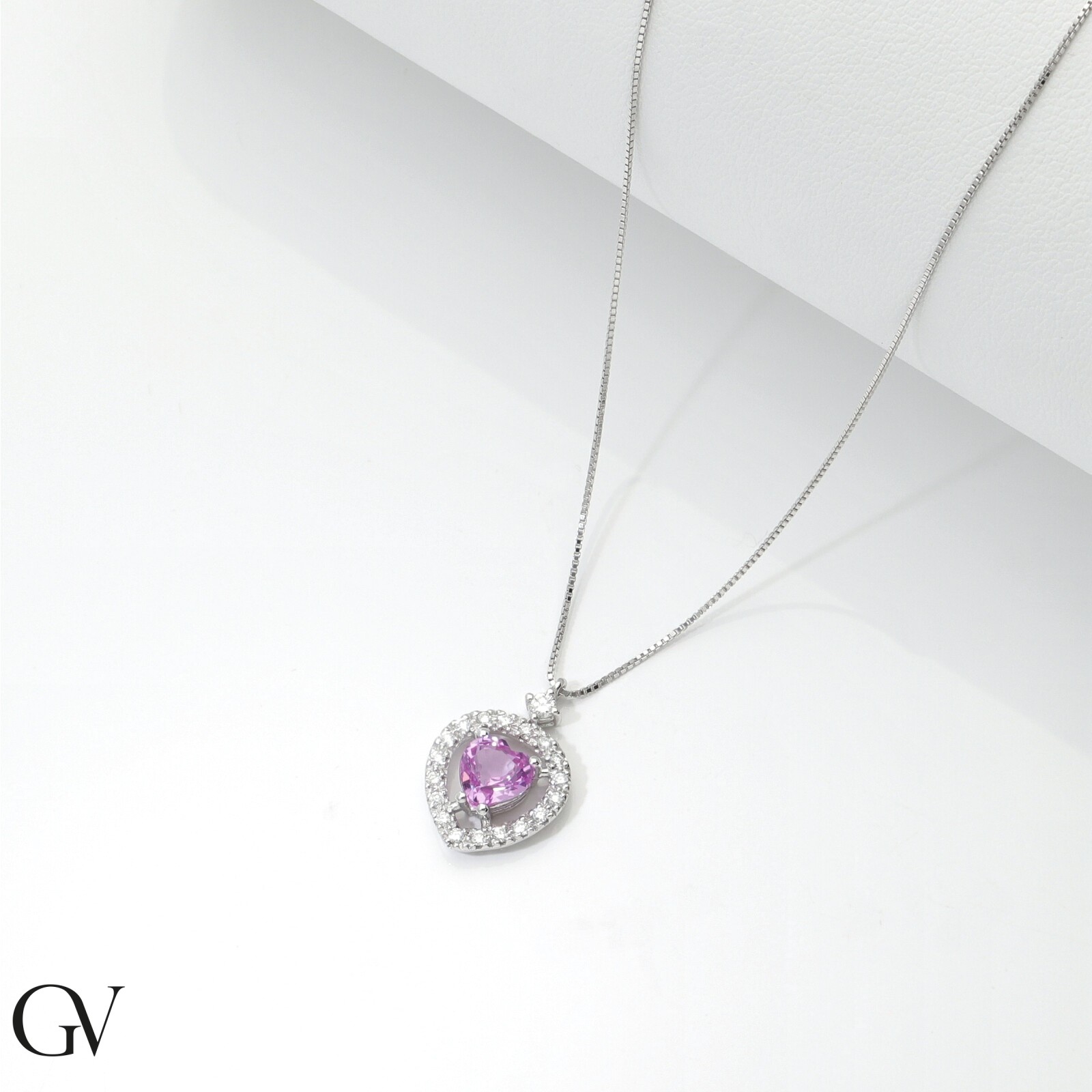 Collier en or blanc avec saphir rose