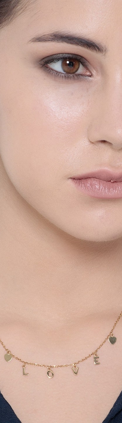 Collier en or jaune 18k avec deux petits cœurs et inscription LOVE