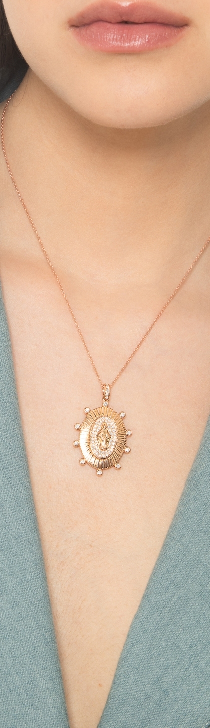 Collier en or rose 18k avec la Vierge orné de diamants