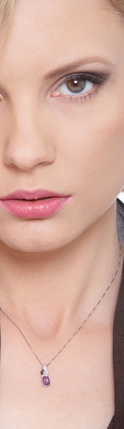 Collier femme en or blanc 18k avec améthyste et diamants