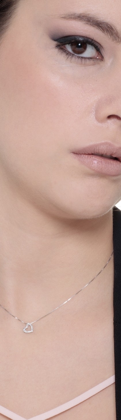 Collier or blanc 18k avec pendentif en forme de cœur