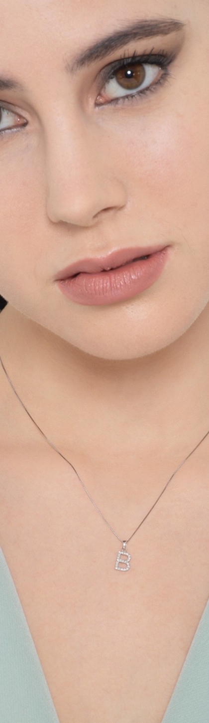 Collier or blanc 18k lettre B diamant 0,80 cm