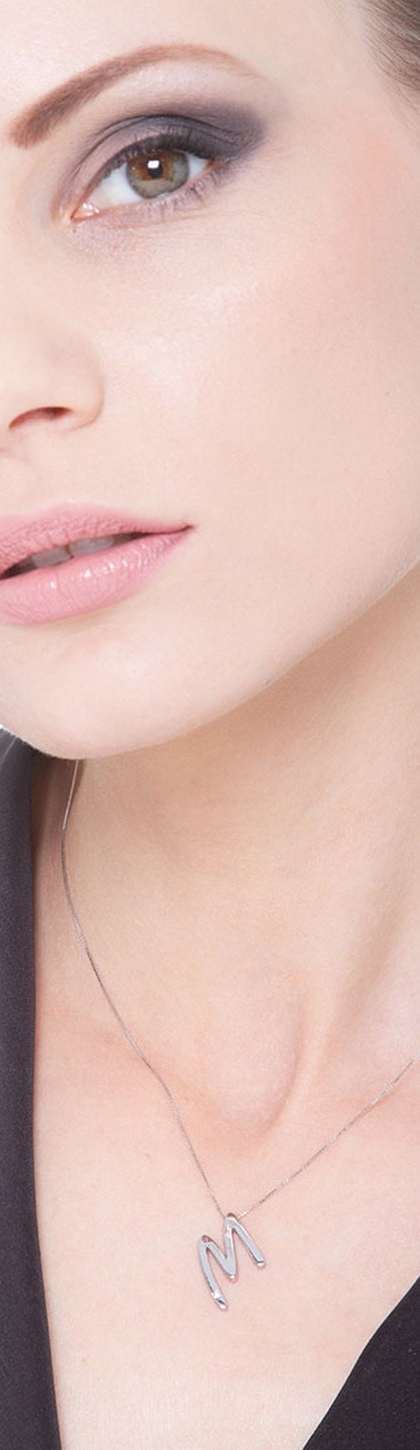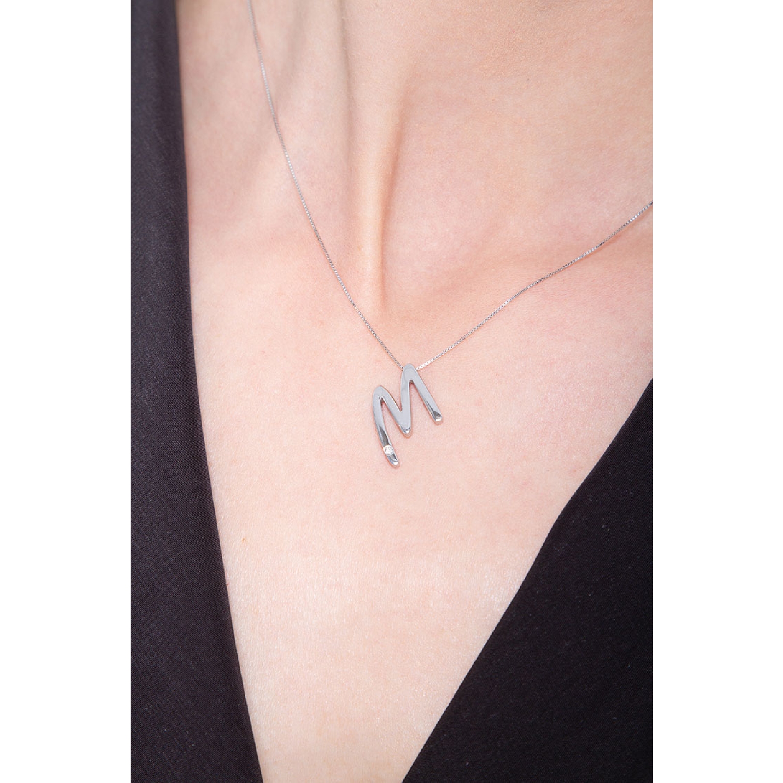 Collier or blanc 18k lettre M diamant