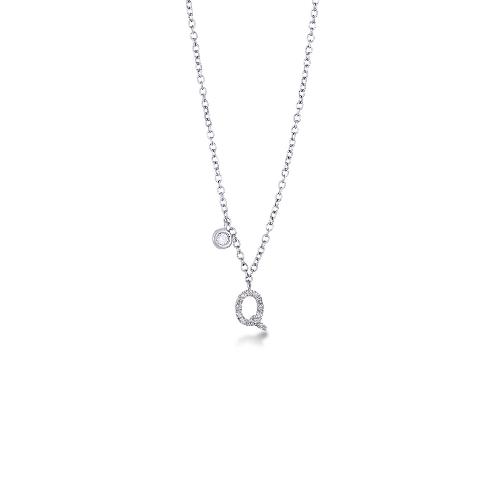 Collier or blanc 18k lettre Q diamants