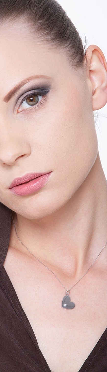 Collier pendentif coeur or blanc 18k et diamant 0.04 ct