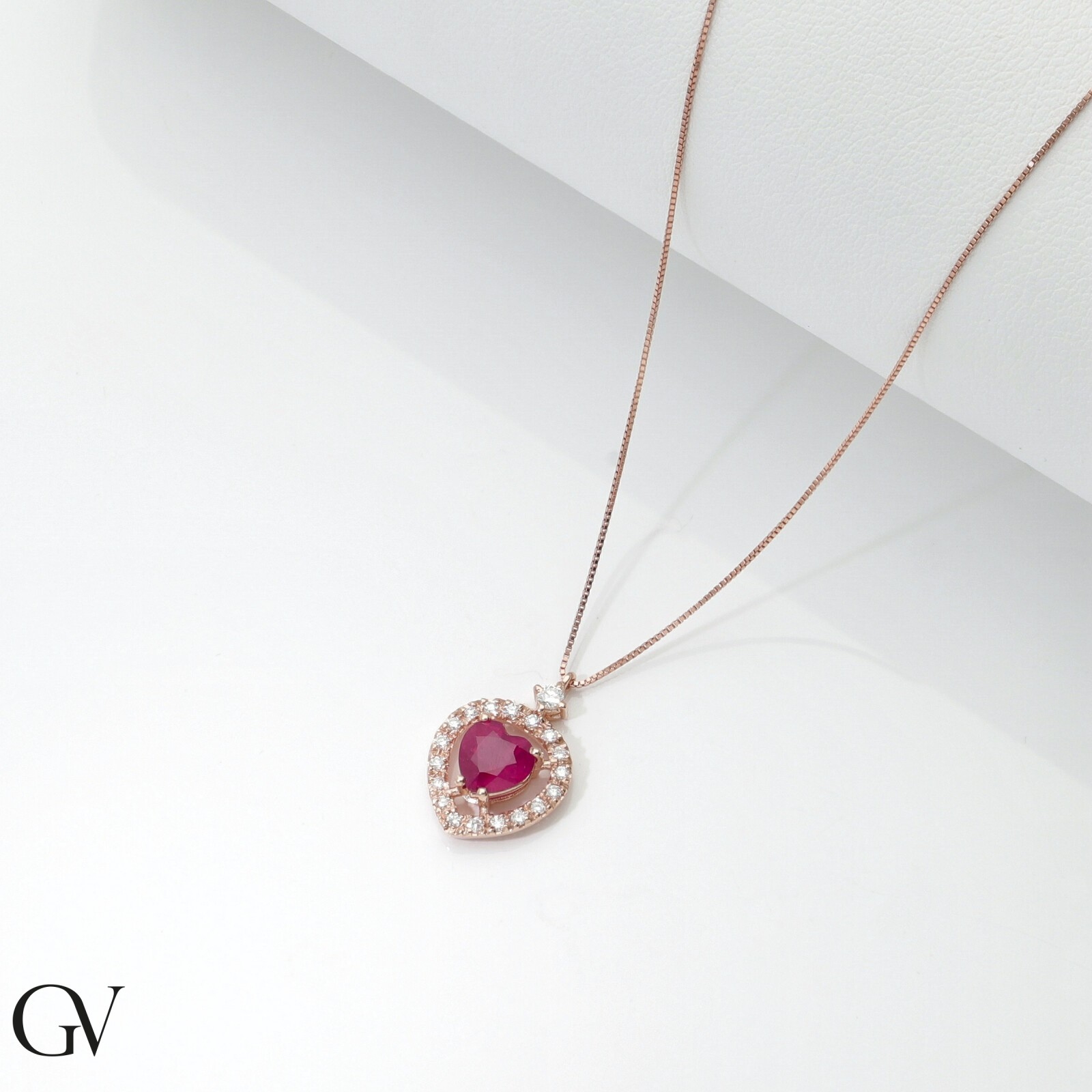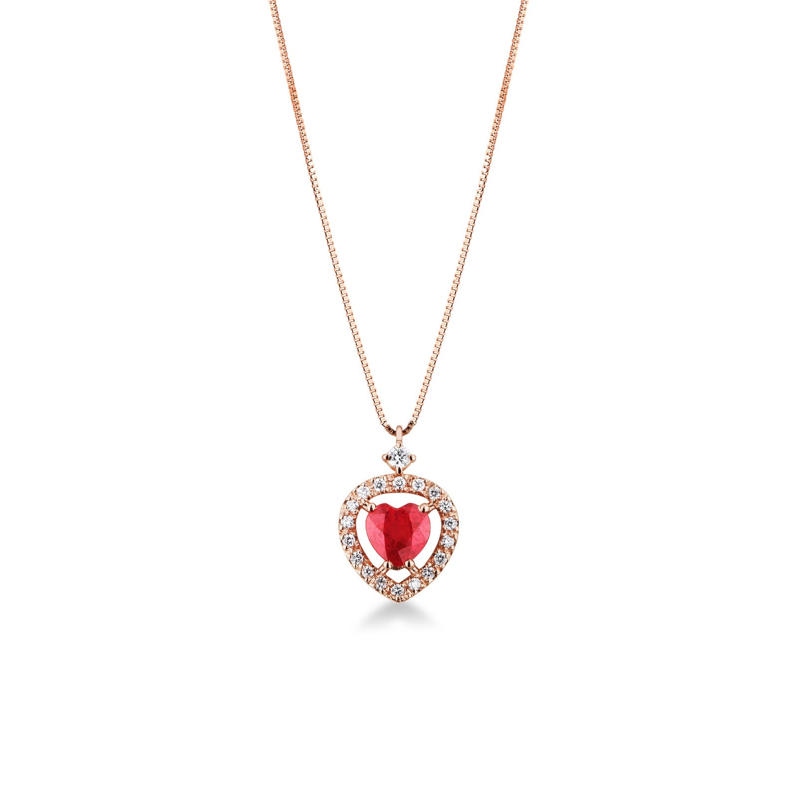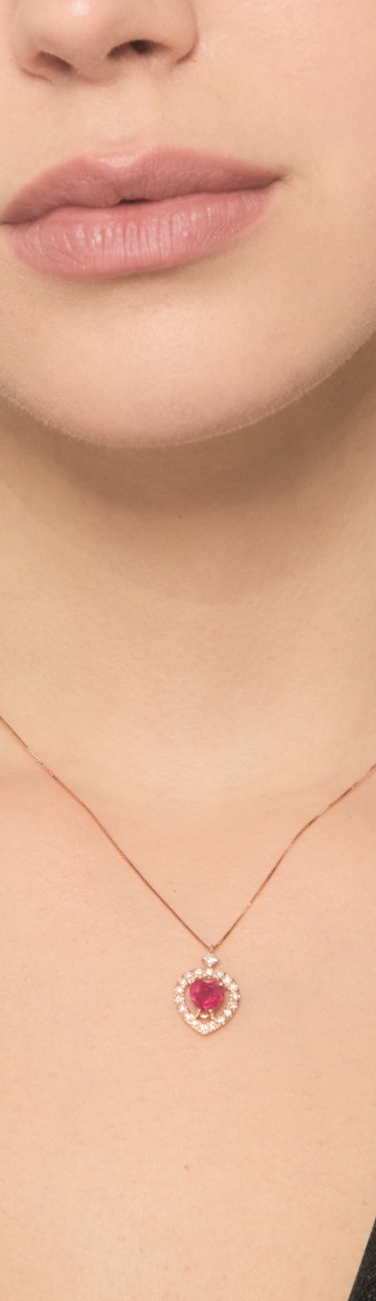 Collier pendentif cœur rubis en or rose 18K