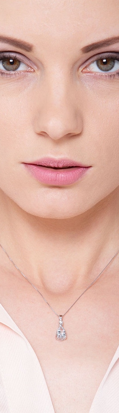 Collier pendentif en or blanc 18k aigue-marine et diamants