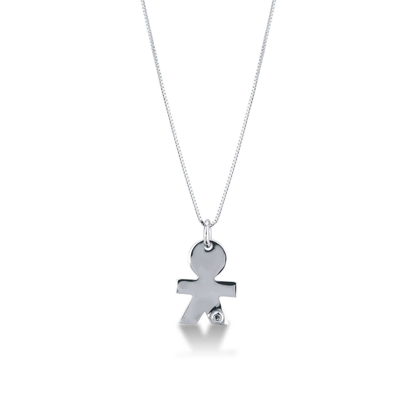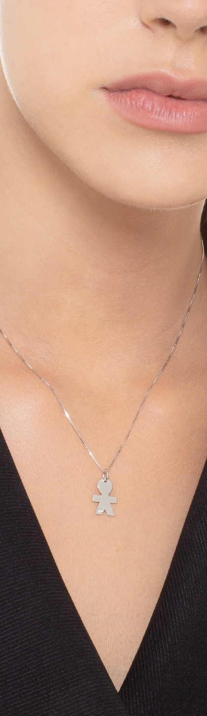 Collier pendentif garçon en or blanc 18k avec diamant