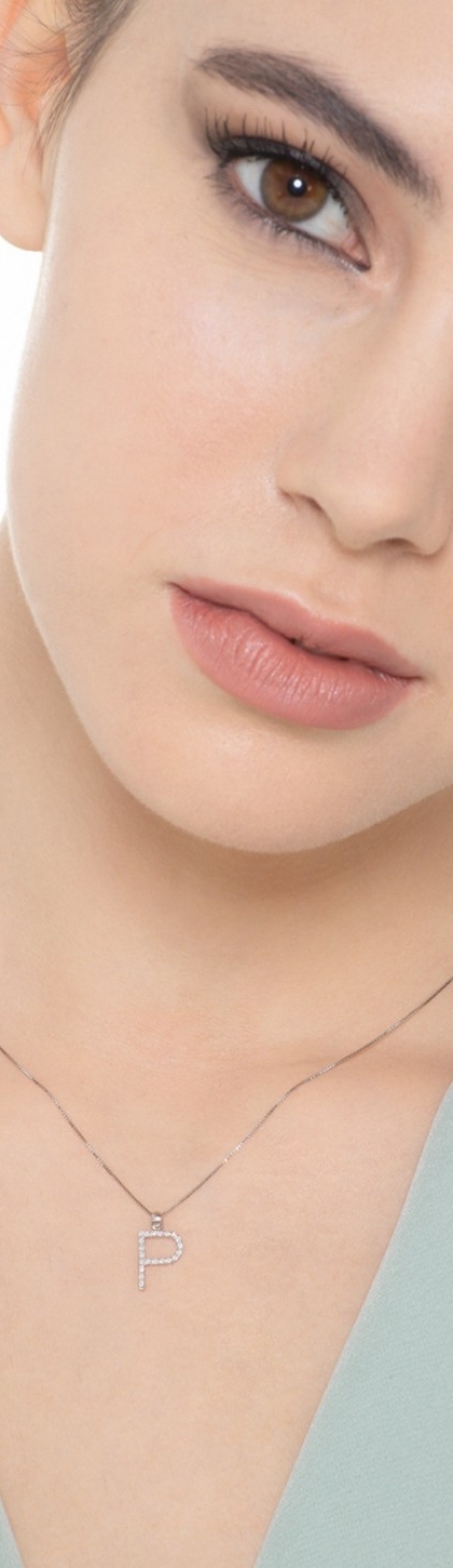 Collier pendentif lettre P en or blanc 18K et diamants
