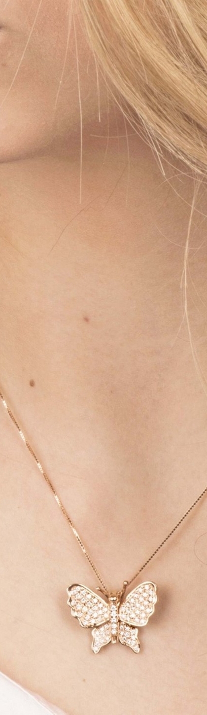 Collier pendentif papillon en or rose 18 carats serti de diamants
