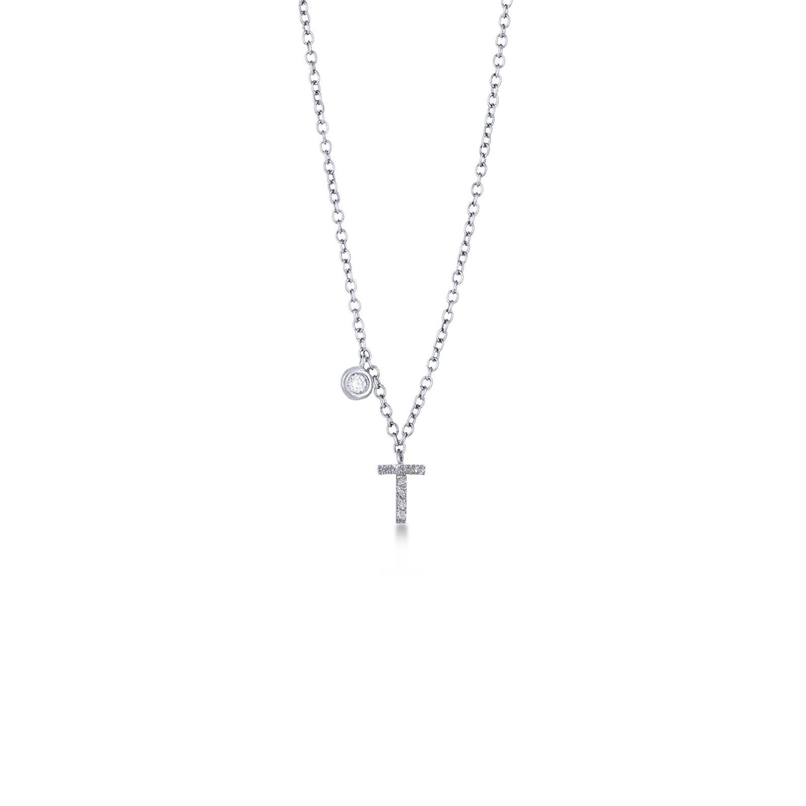 Collier pendentif personnalisé lettre T or blanc et diamants