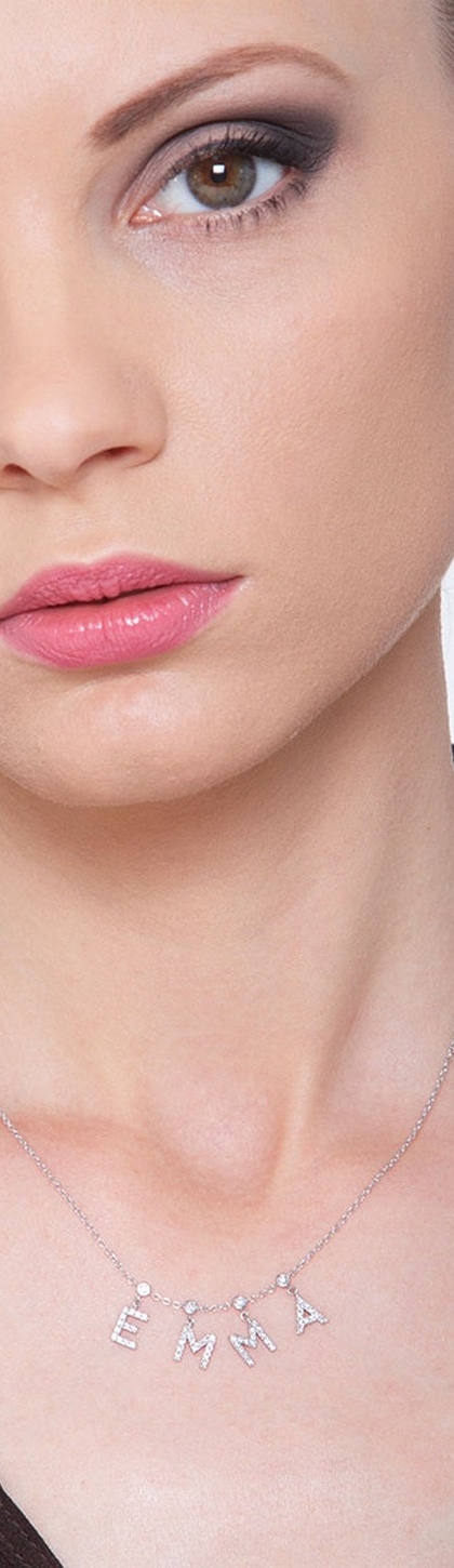 Collier personnalisé prénom EMMA en or blanc 750 et diamants