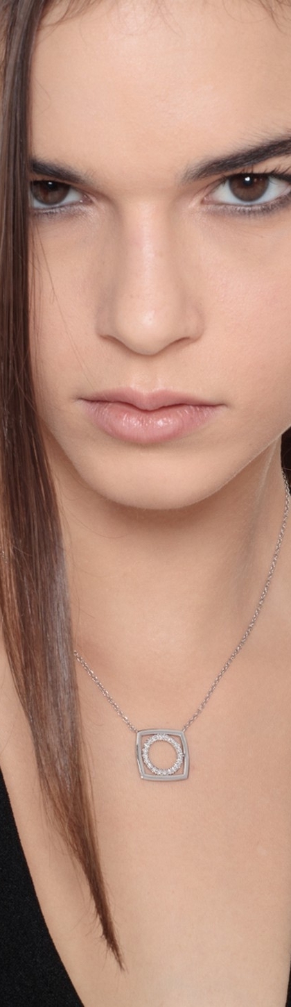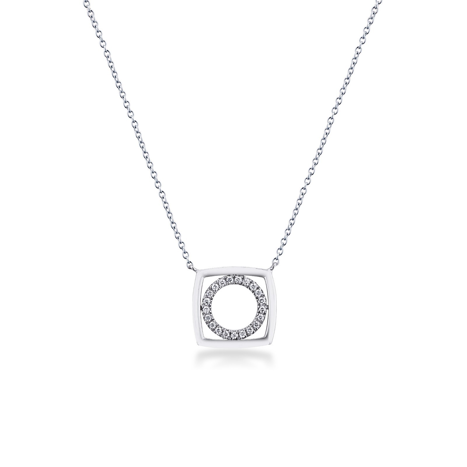 Collier Rolo en Or Blanc 18k avec Pendentif Carré et Diamants