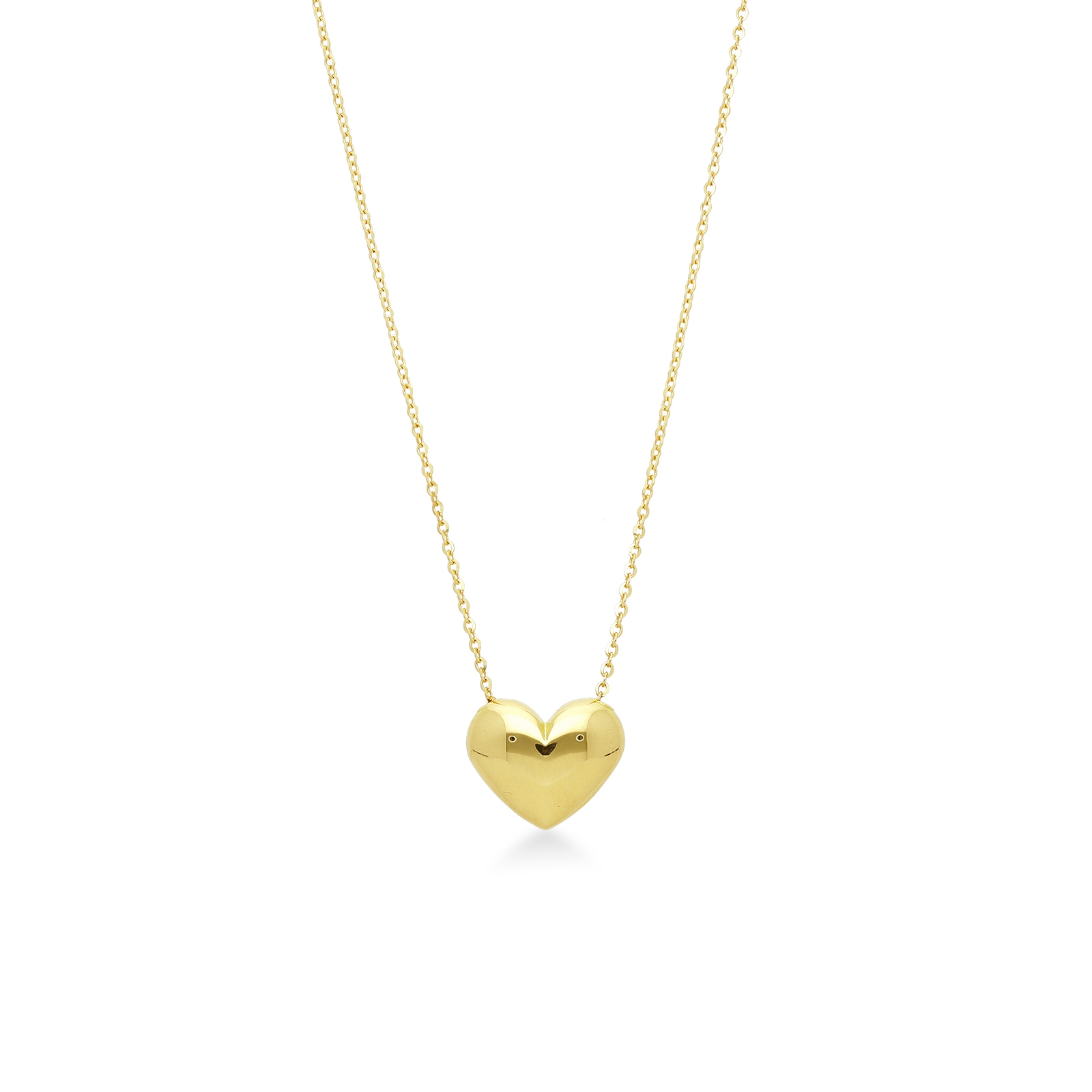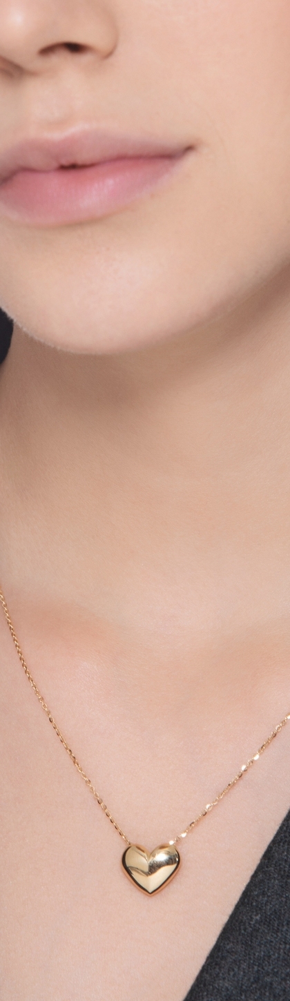 Magnifique collier en or jaune 18k orné d’un pendentif en forme de cœur bombé