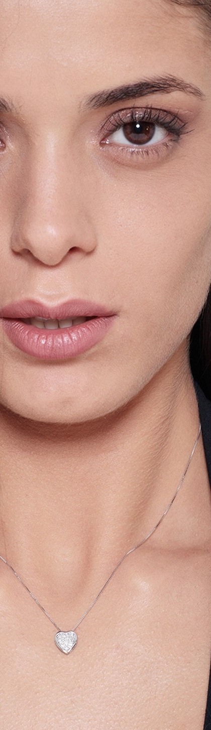 Pendentif à coeur en or blanc 18k pavé de diamants