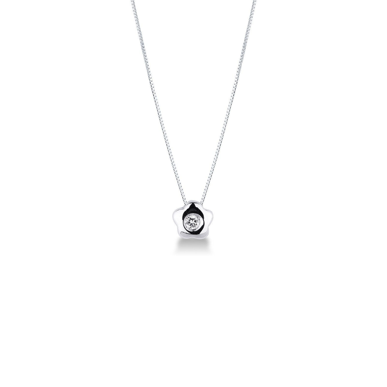 Pendentif en forme de fleur en or blanc 18k avec diamant 0.04 ct