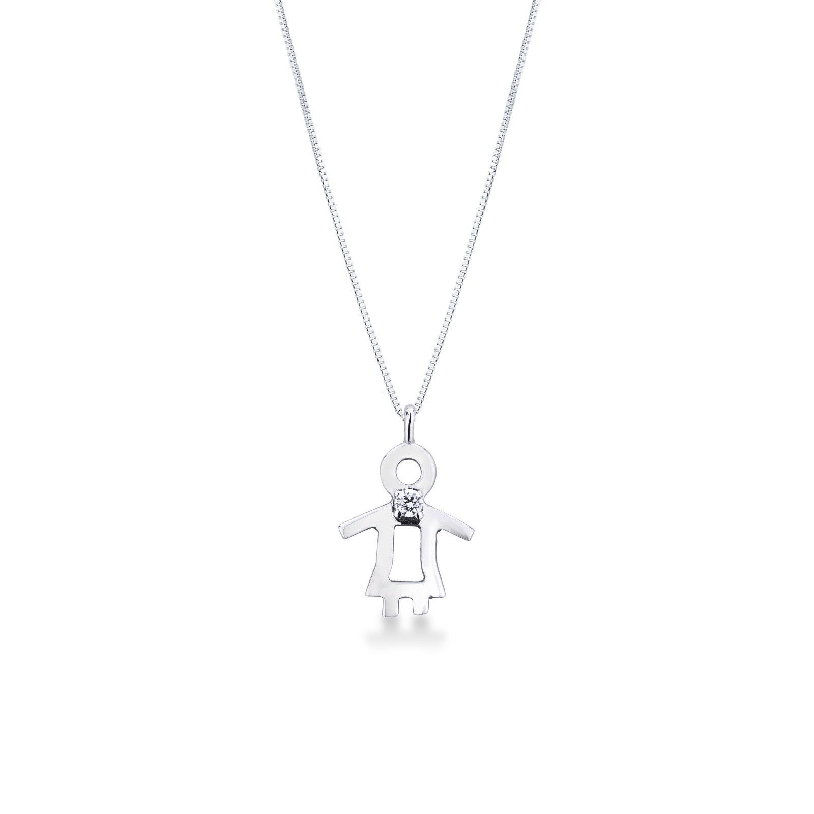 Pendentif enfant or blanc 18k fillette avec diamant 11x10 mm