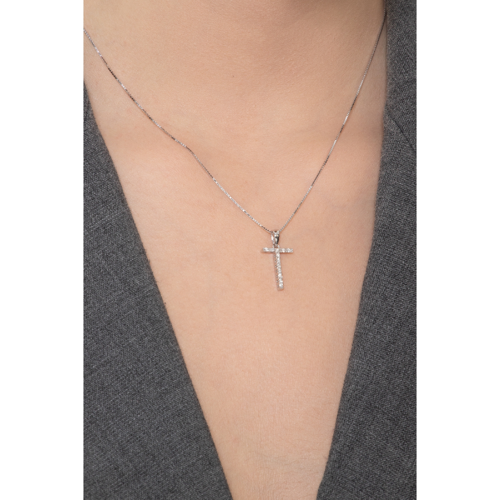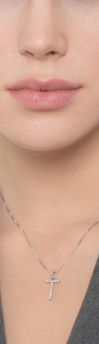Pendentif lettre T collier femme or blanc et diamants