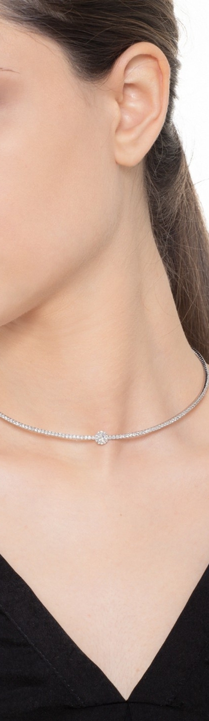 Collier semi-rigide femme en or blanc 18k avec diamants