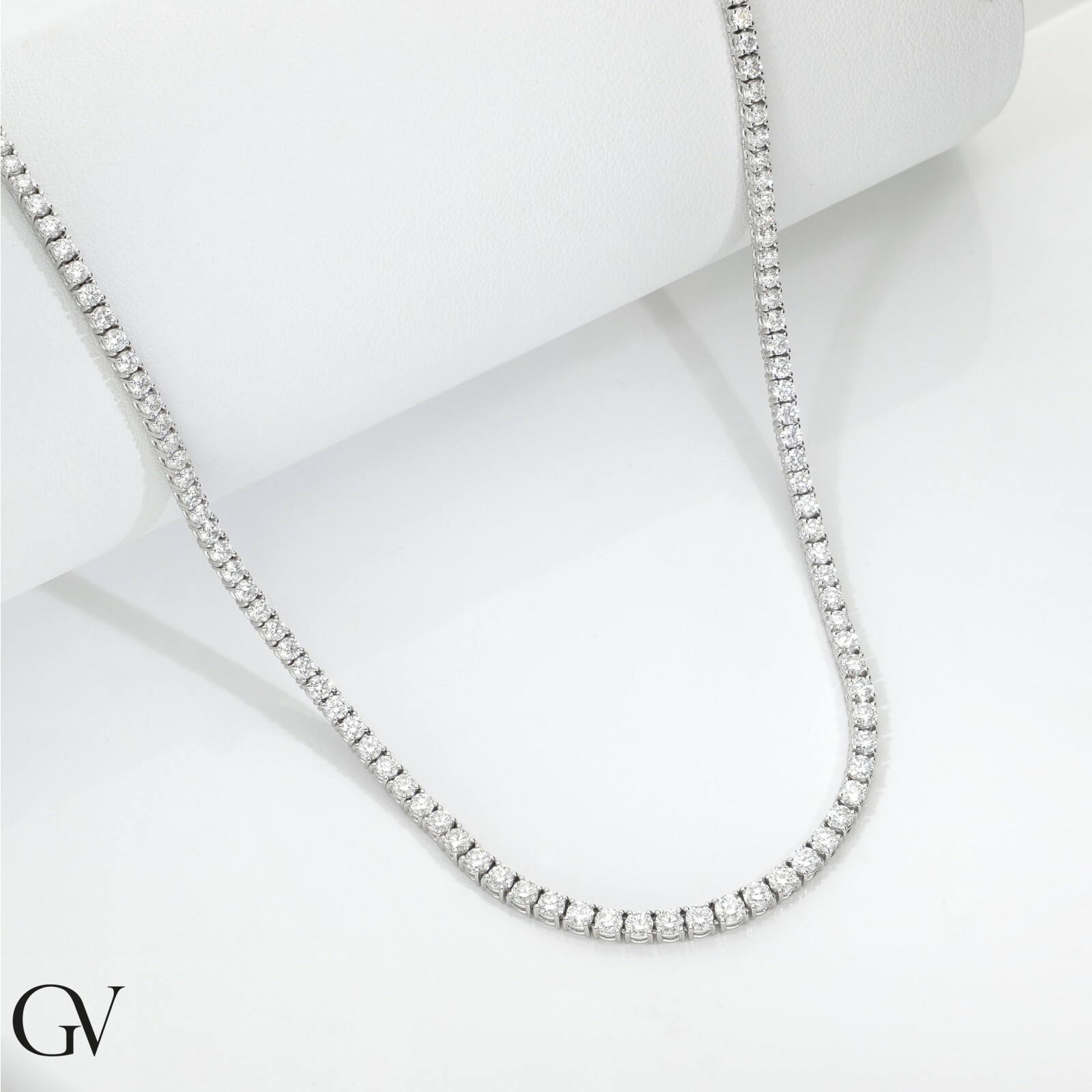 Collier Tennis En Diamant 6,43 Carats En Or Blanc 18k