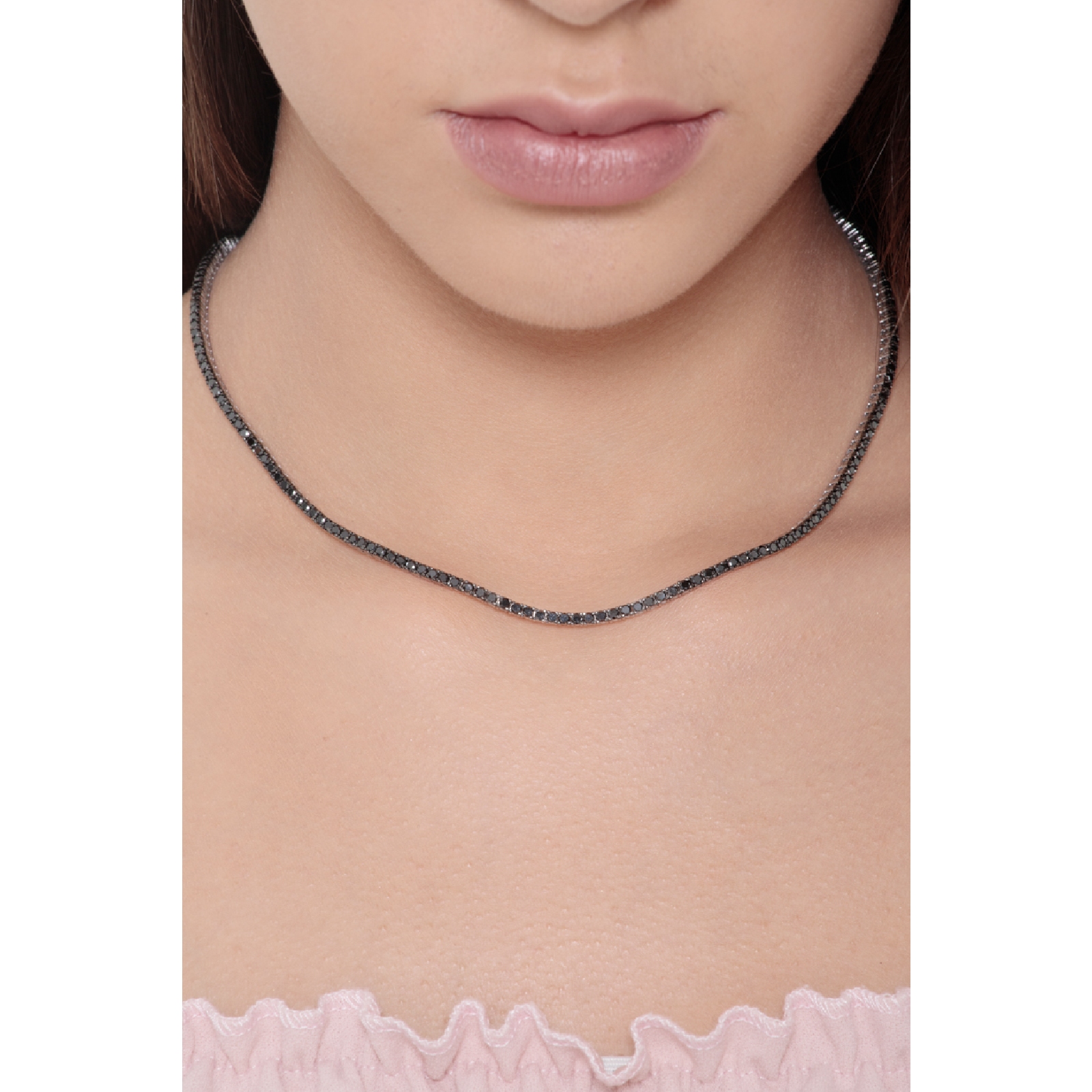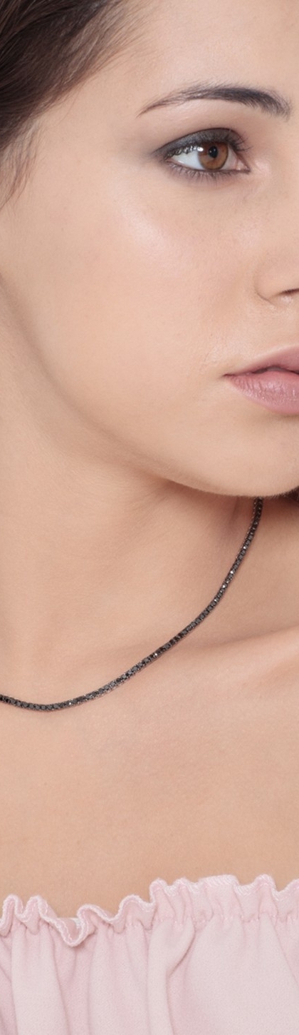 Collier tennis en or blanc 18k avec diamants noirs brunis 2,2 mm