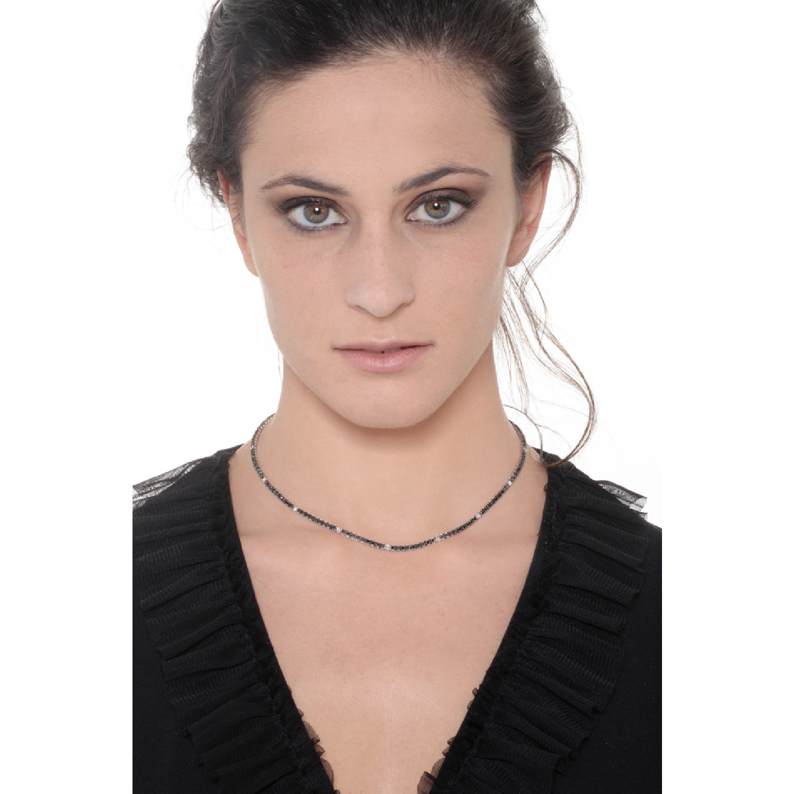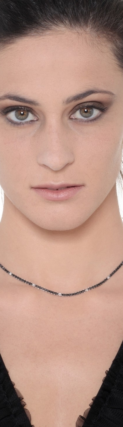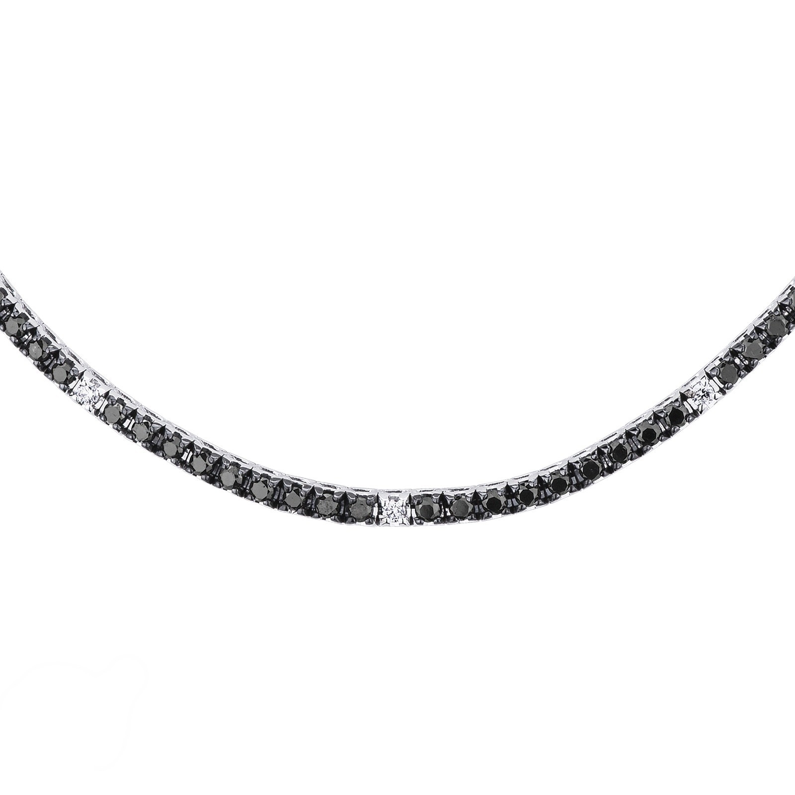 Collier tennis en or blanc 18k avec diamants noirs et blancs